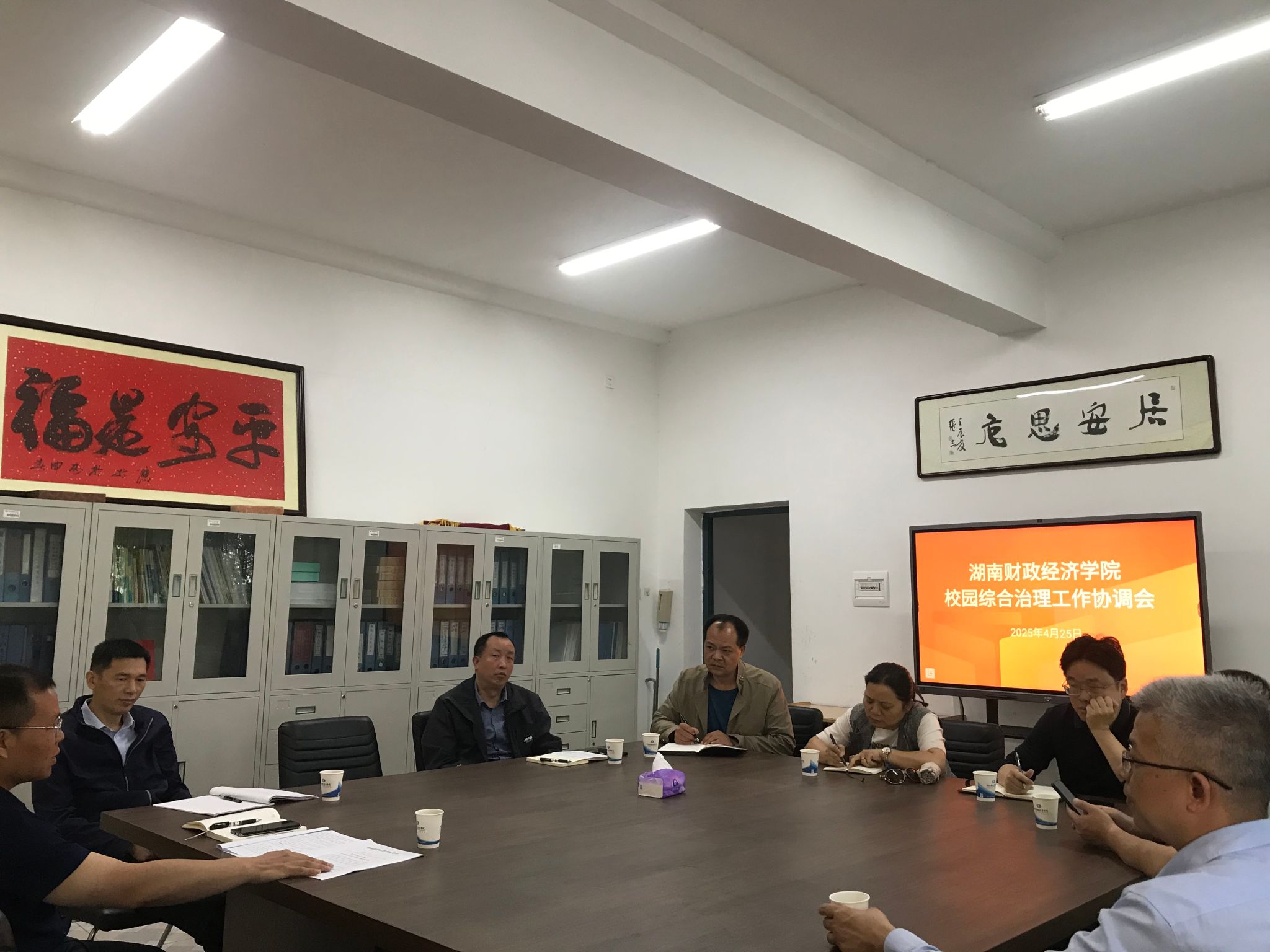 2025年4月25日上午,学校校园社会治安综合治理工作领导小组办公室在大礼堂会议室组织召开了校园综治工作专题会议,保卫部、后勤处、基建处、资产管理处等部门负责人及相关同志参加。