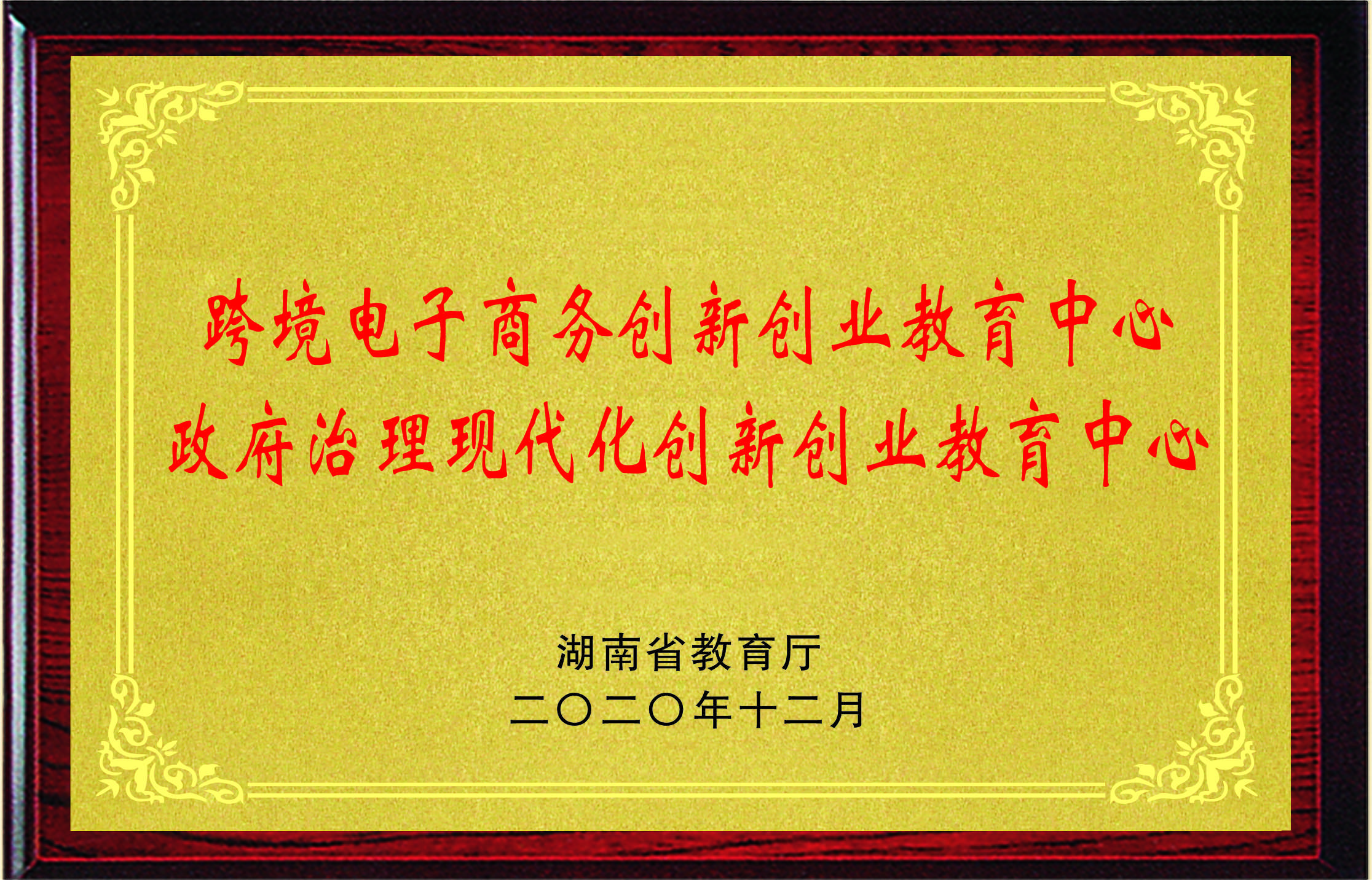2020年12月被湖南省教育厅评为“跨境电子商务创新创业教育中心”“政府治理现代化创新创业教育中心”“电商物流与供应链校企合作创新创业教育基地”“影视传媒专业校企合作创新创业教育基地”