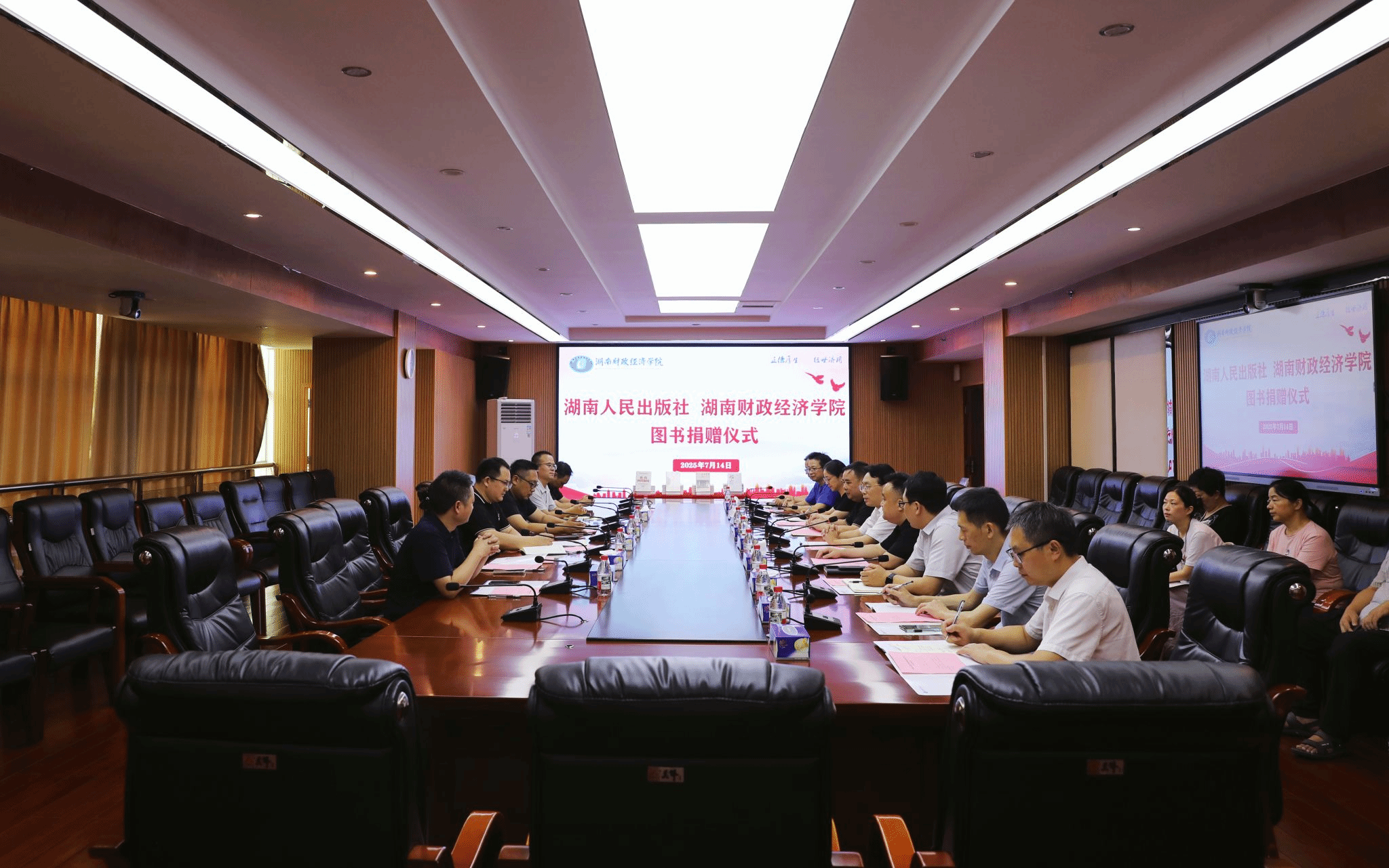 (本网讯)7月14日下午,湖南人民出版社捐赠图书仪式在永利办公楼715会议室举行。湖南人民出版社党委书记、社长张勤繁,副社长彭翔,校党委书记易棉阳,副校长潘爱民,党委委员、宣传部、统战部部长文炳勋出席捐赠仪式。