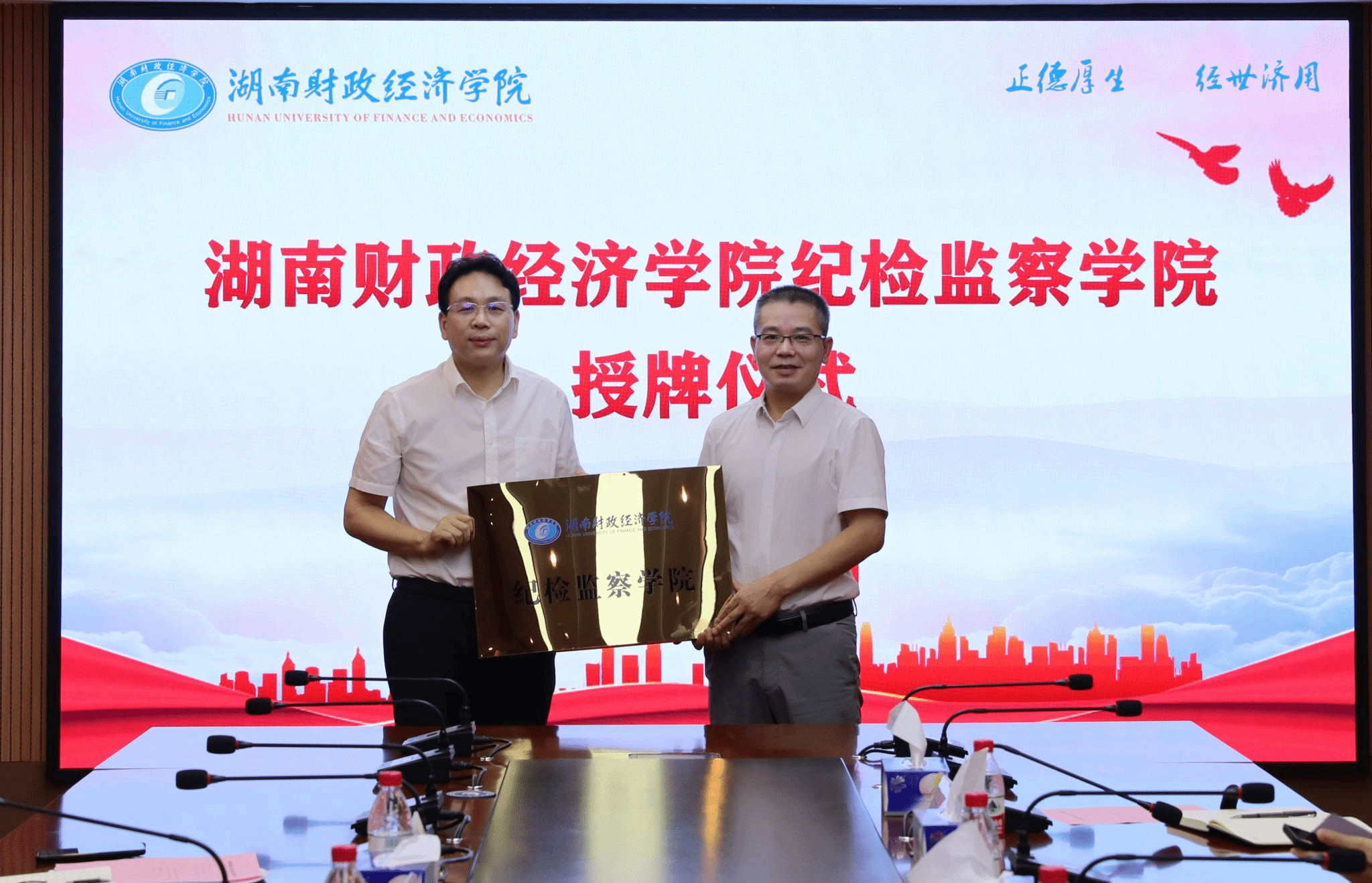 仪式上,易棉阳为纪检监察学院授牌,学院负责人何四海接牌。