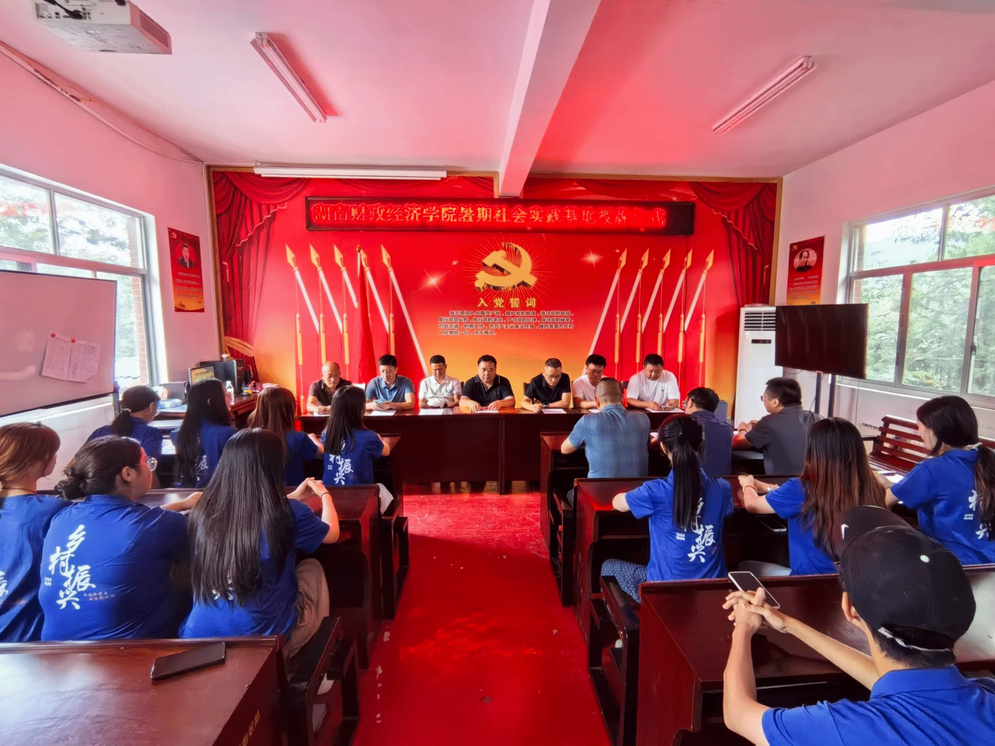 (本网讯)7月29日,永利暑期社会实践基地授牌仪式在湖南省怀化市芷江侗族自治县牛牯坪乡青叶树村村部会议室举行。校党委委员、宣传部、统战部部长文炳勋,学生工作部、团委主要负责人,芷江侗族自治县委常委、县人民政府副县长朱辉,牛牯坪乡党委书记丁芷安,青叶树村党支部书记彭晓春,驻村工作队和小易志愿服务队队员参加授牌仪式。