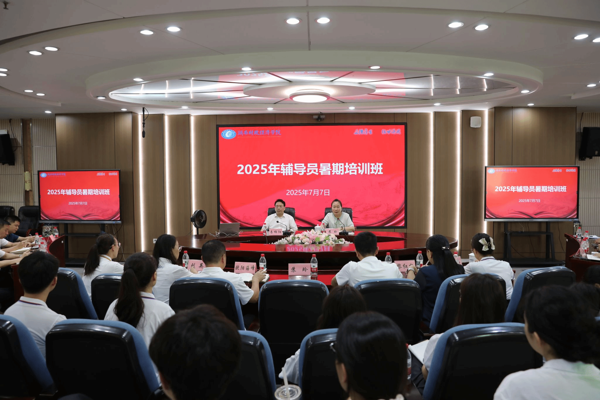 (本网讯)为进一步加强辅导员队伍建设,切实提升辅导员队伍的思想素质和业务水平,7月7日至8日,学校在办公楼五楼视频会议室开展2025年辅导员暑期集中培训。校党委书记易棉阳、党委副书记苏玲出席并作专题讲座。学生工作部、团委全体工作人员,各二级学院学工负责人及全体专兼职辅导员参加培训。