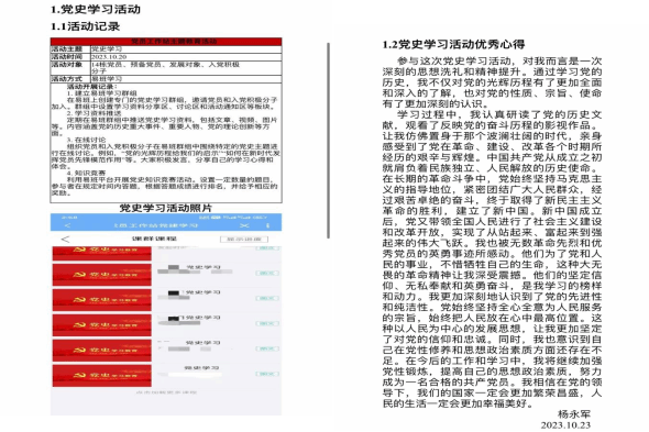 (一)协同育人,形成育人合力。开展“党的二十大精神”主题宣讲教育活动。始终把思想引领放在学生工作第一位,以科学理论为指导铸魂育人,开展传承红色基因教育活动,开展传承红色基因弘扬红色文化教育活动。推进党的创新理论入脑入心,开展形式多样的理论学习和教育实践活动,带领学生党员汇聚起团结奋进的强大力量,焕发出更为强烈的历史自觉和主动精神。