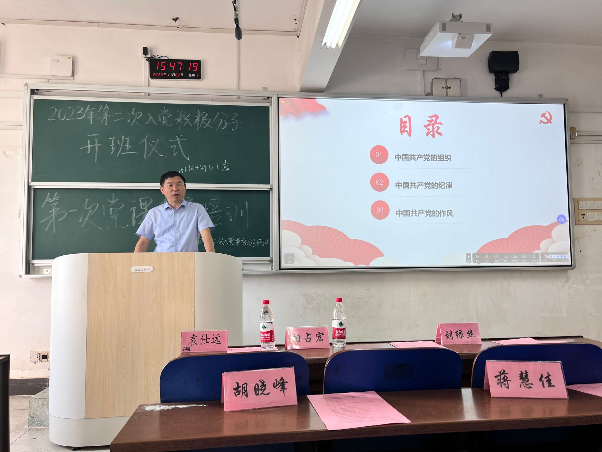 工程管理学院党委书记向占宏,以“中国共产党的组织、纪律、作风”为主题讲授党课。让大家更加深刻地理解党的组织建设、纪律建设、作风建设对于党和国家事业发展的重要作用,引导明确党员的责任和义务,为将来发展成为优秀党员坚守初心使命打牢了理论基础。