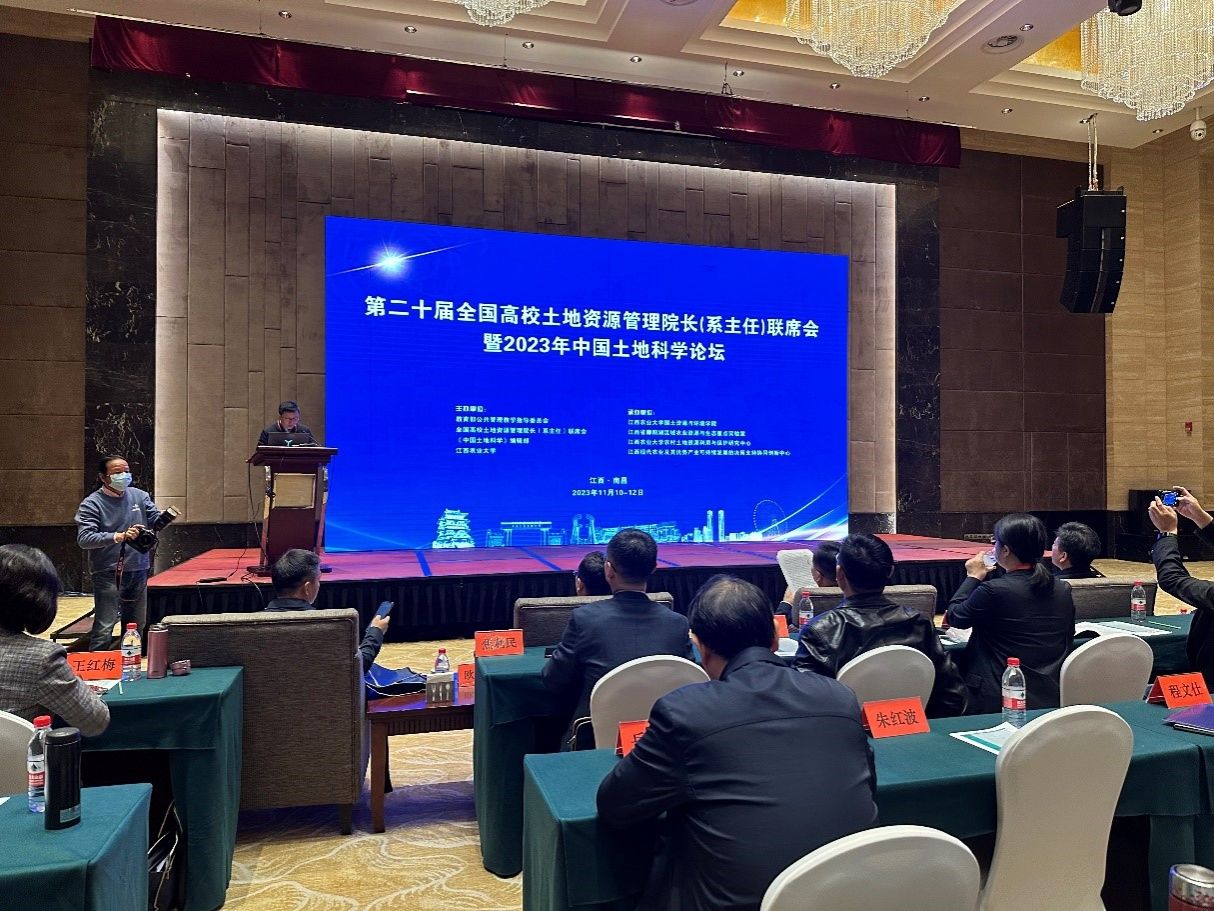 (本网讯)第二十届全国高校土地资源管理院长(系主任)联席会议暨2023年中国土地科学论坛会议于2023年11月10日-12日在江西南昌市召开,我院副院长罗永恒带领土地管理系部分教师参加并进行了学术交流。本次会议主题为“面向中国式现代化的国土空间利用与规划”,来自浙江大学、中国人民大学、中国农业大学、南京农业大学、华中农业大学等100余所高校与科研单位的480余名专家和代表出席会议。