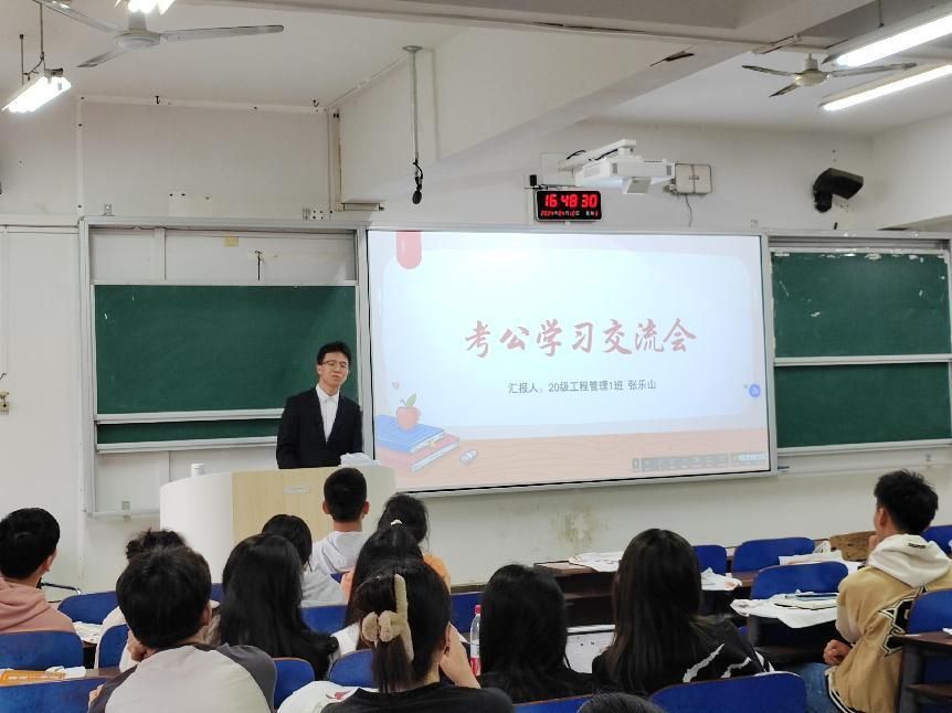 来自20级土地资源管理二班的朱法军学长和20级工程管理一班的张乐山学长通过分享学习计划、课程选择、面试技巧等,用自己的经历为同学们传授实战经验。他们的分享不仅深化了同学们对公务员考试的理解,也为即将踏上公考之路的同学们指明了方向。