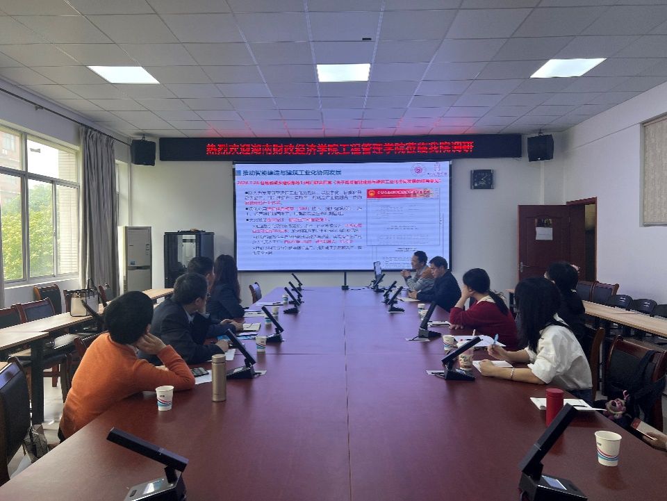 会议开始,刘方成代表湖南工业大学土木工程学院对我院的来访表示欢迎。工程管理学院党委书记向占宏对湖南工业大学土木工程学院的热情接待表示感谢,说明了此次调研交流的目的和希望交流和探讨的问题。罗永恒副院长针对工程管理学院日常教学管理进行了具体介绍。双方围绕专业建设、学科建设、人才培养等展开交流。