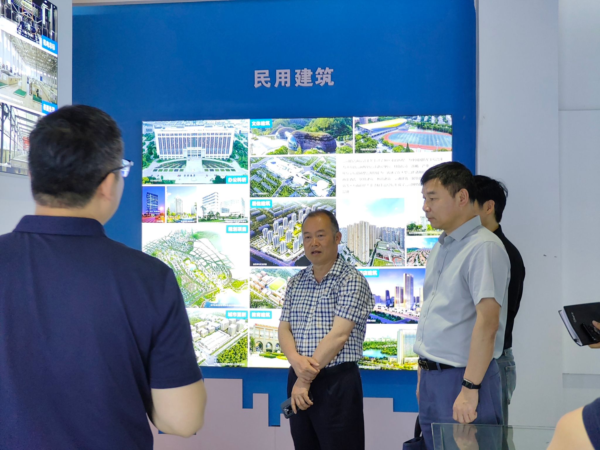 罗红宙带领大家参观企业展览馆,详细介绍公司发展历程、业务板块和在施工总承包方面的成功案例及优势资源。