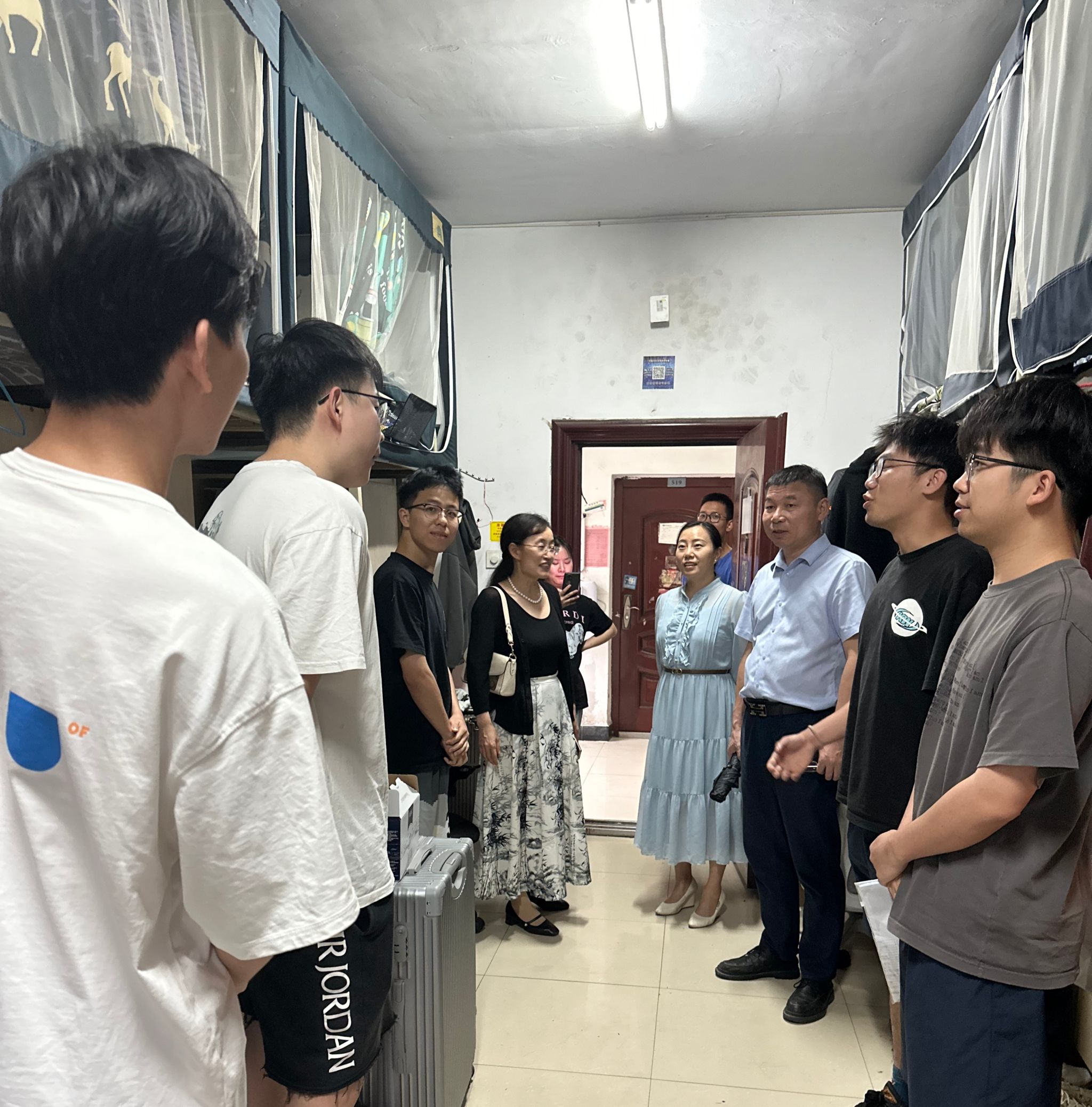 (本网讯)6月4日,为深入了解毕业生生活状况,工程管理学院党委书记向占宏、院长颜红艳、副书记刘绿丝带领毕业班辅导员一行深入走访毕业生宿舍,与即将离开校园的学子们进行了亲切交流。