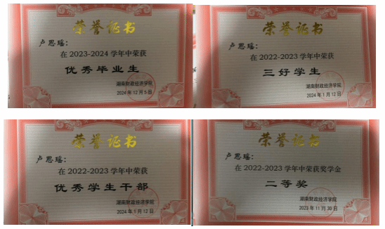 卢思瑶,中共预备党员,304永利集团登录入口工程管理学院2021级工程造价专业本科生。在校期间,先后担任工程管理学院文体部副部长、工程造价三班班长,凭借出色的组织协调能力与务实的工作作风,高效完成各项任务,展现出优秀的管理才能与服务意识。荣获校级奖学金、“三好学生”、“优秀学生干部”、“校级优秀毕业生”等荣誉称号,这些荣誉充分印证了在专业学习、实践能力与品德修养方面的全面发展。并成功考取南京航空航天大学,向着更高的学术目标稳步迈进。