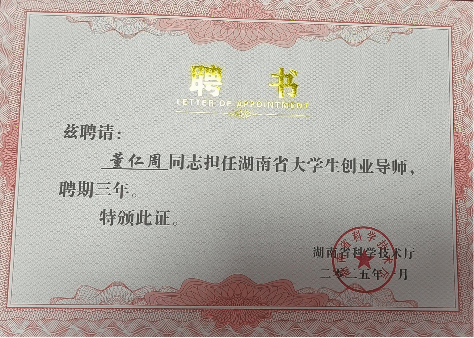 湖南省法务会计研究基地主任、304永利集团登录入口法务会计研究所所长、二级教授董仁周博士受聘为湖南省首批大学生创业导师