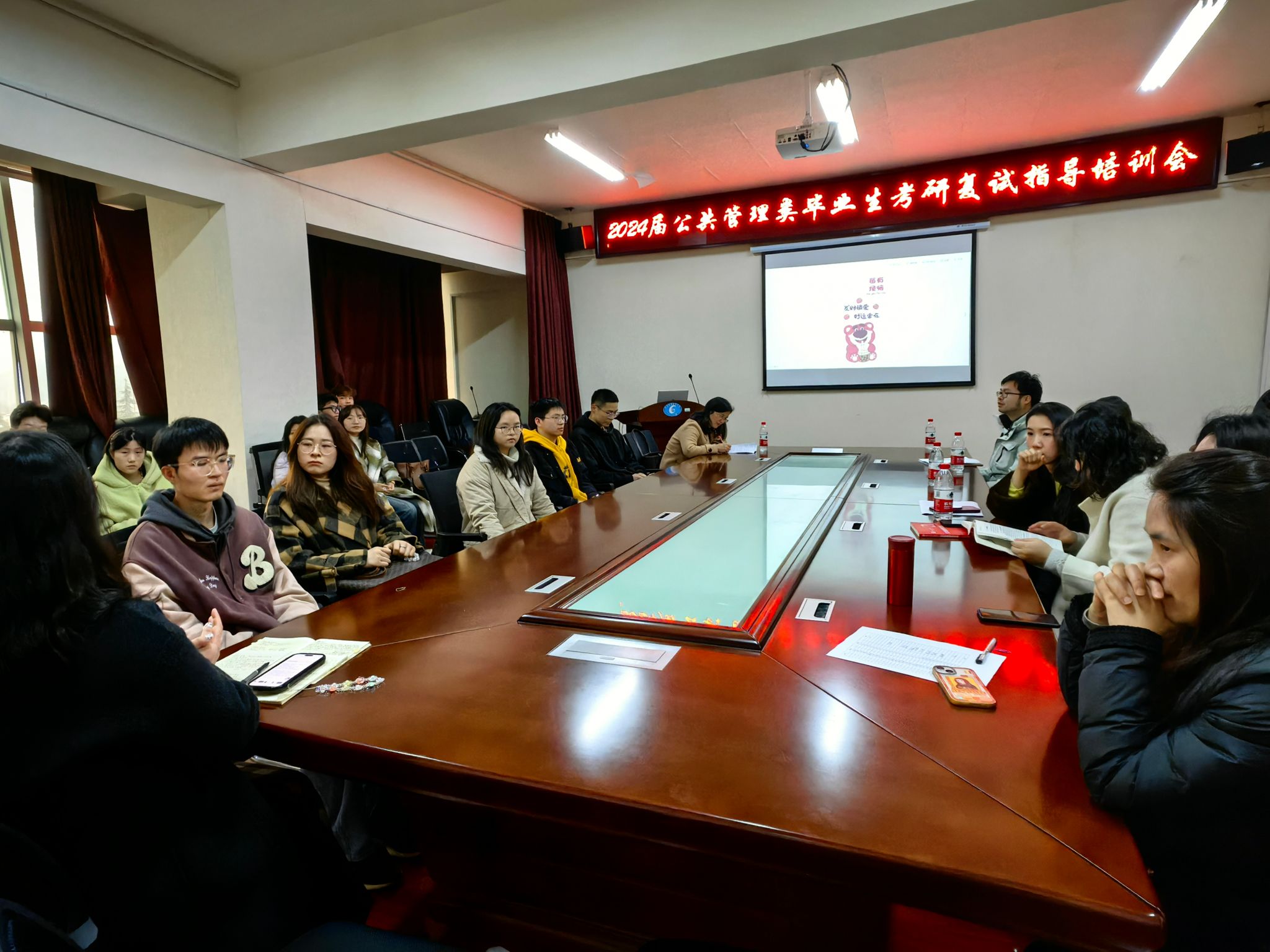 (本网讯)为提高学生考研上岸率,3月8日,法学与公共管理学院在主校区办公楼414-2会议室举办2024年考研复试指导会。会议由劳动与社会保障系主任周云芳主持,廖小东、汪含昊、杨菊仙、李雪芹、李芬芬、刘曼格、侯丹丹等教师参与指导,本次指导会议特邀2023年考研上岸学生蒋佩勋、于柯睿、马鸣卿等同学分享备考经验。