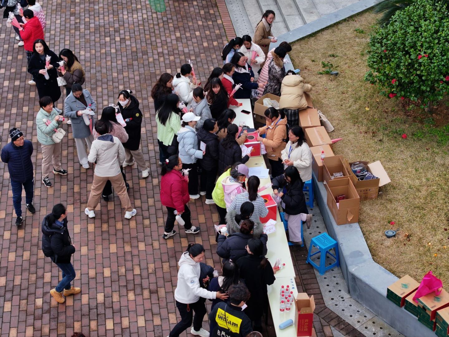 完成环西湖公园健步走一圈后,女教职工们凭借已盖章的贺卡到集合点进行惊喜抽奖并兑换奖品全体女教职工都收获了一份节日的惊喜。
