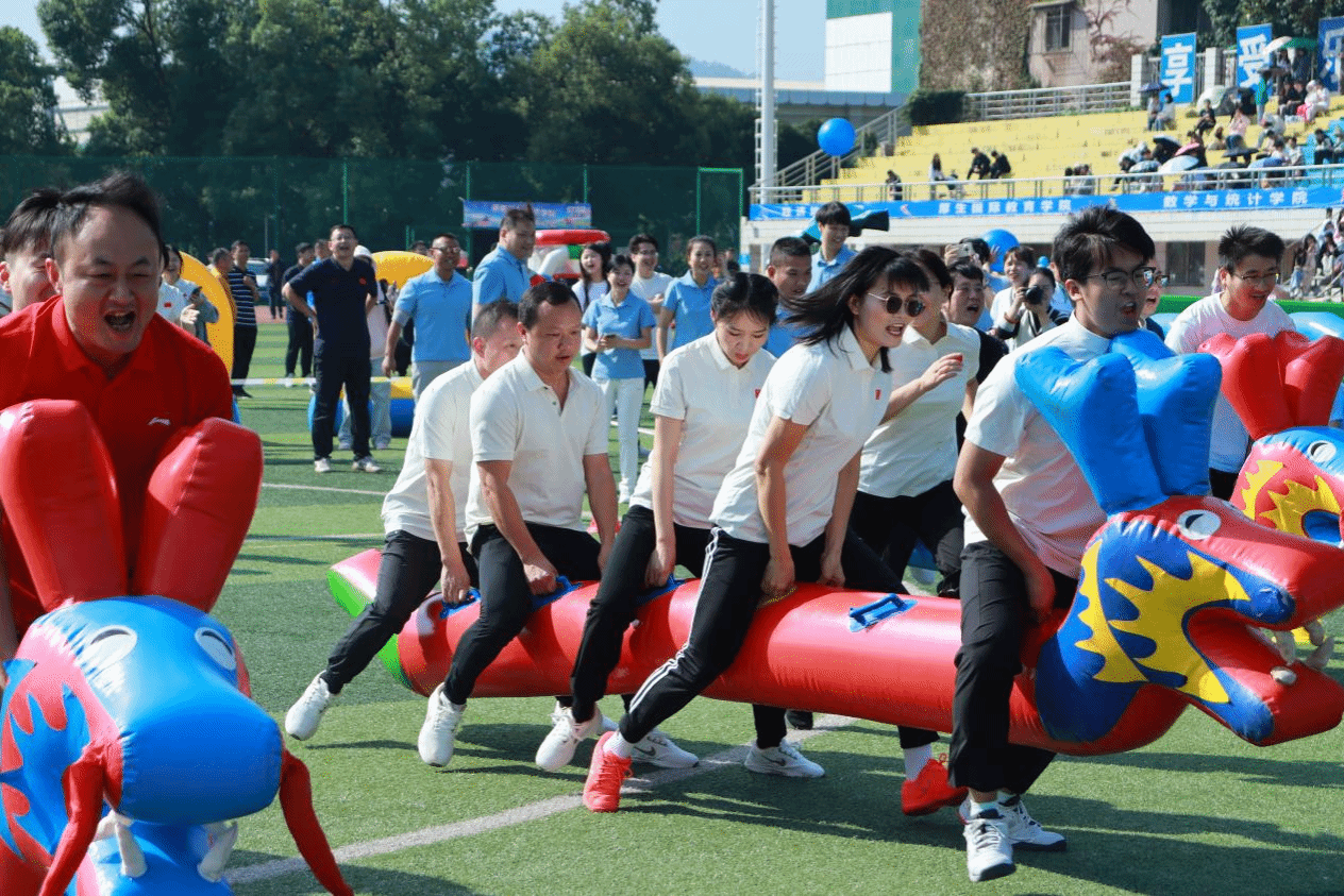 运动会设“龙行天下”“凝心聚力”“灌篮高手”“砥砺前行”四个项目。比赛现场紧张激烈,妙趣横生;参赛队员精诚合作、奋力拼搏;拉拉队员热情洋溢,呐喊助威;运动场上欢声笑语,掌声阵阵。