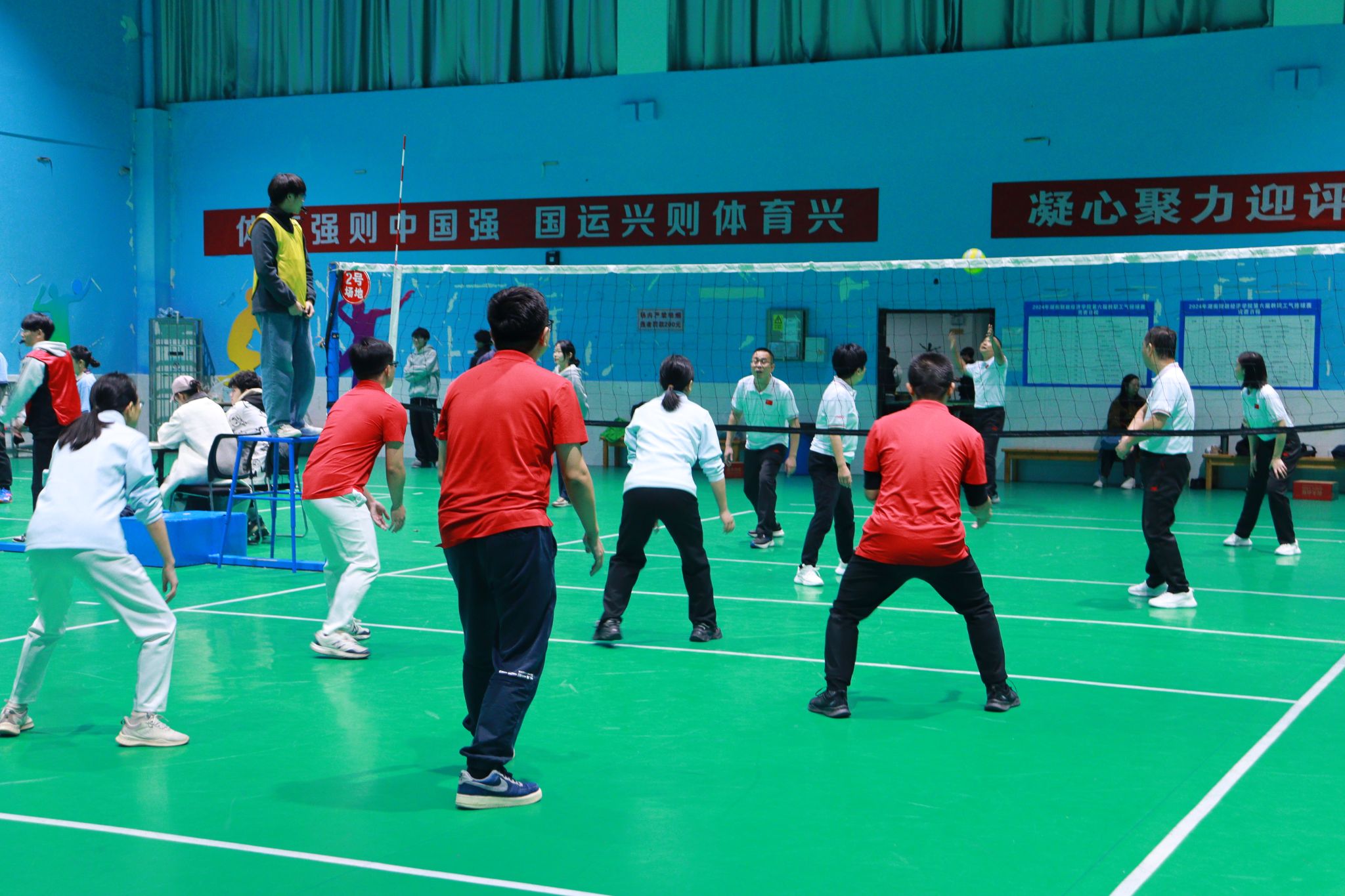 本次比赛采取男女混合组队的方式进行,18支代表队分成A、B、C、D四个小组,采取三局两胜制。赛场上,运动员们精神抖擞,强力的发球、凌厉的扣杀、巧妙的吊球、灵活的反击,团队合作与个人技术完美结合。赛场外观众的欢呼声、呐喊助威声此起彼伏。此次气排球赛不仅为教职工搭建了一个展示自我、交流技艺的平台,更展现出了教职工昂扬向上、永不放弃的精神风貌。