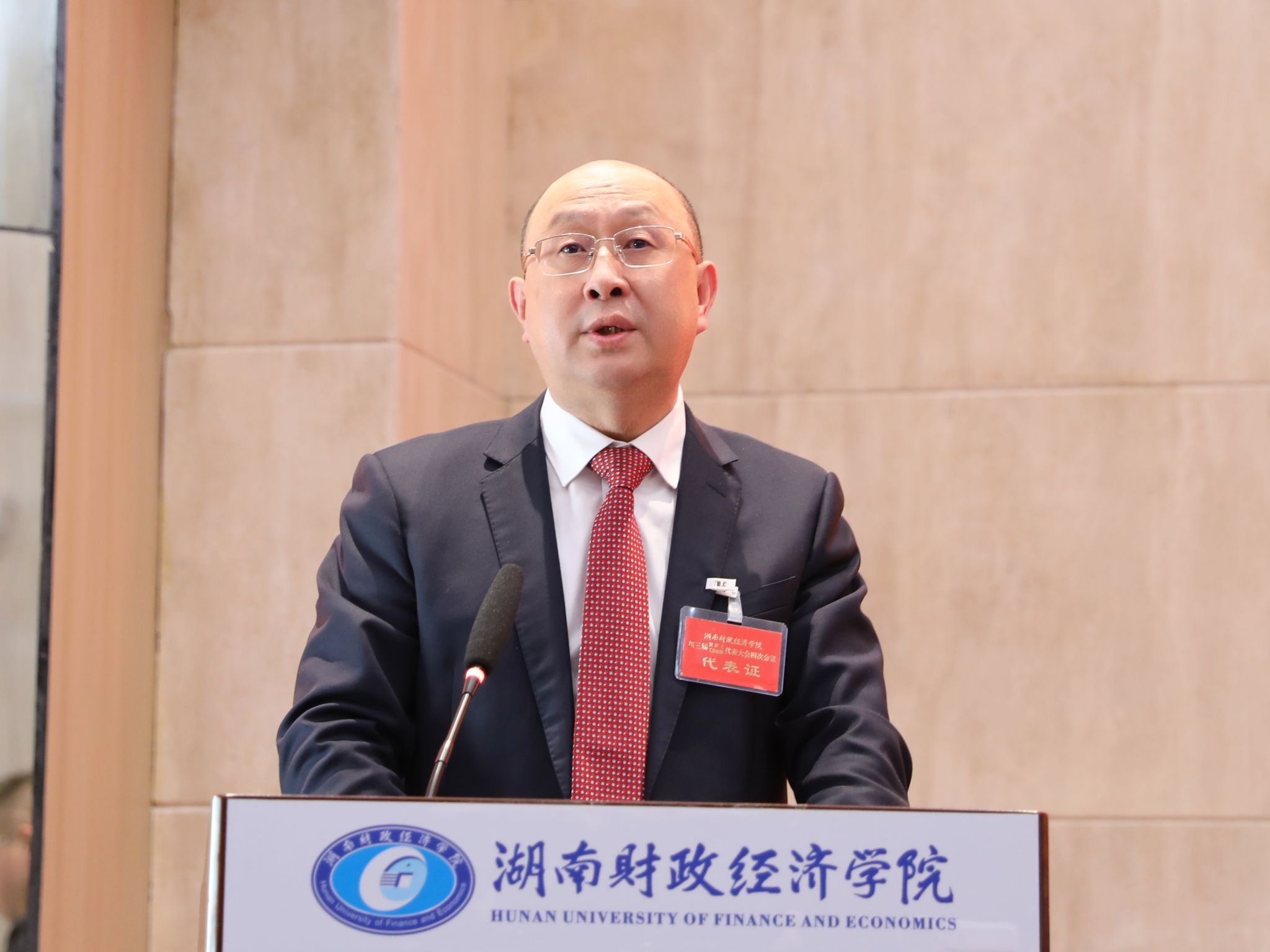赵鹤平代表学校作题为“构建数智财经人才培养新范式 谱写教育科技人才协同发展新篇章”的工作报告 何妍/摄