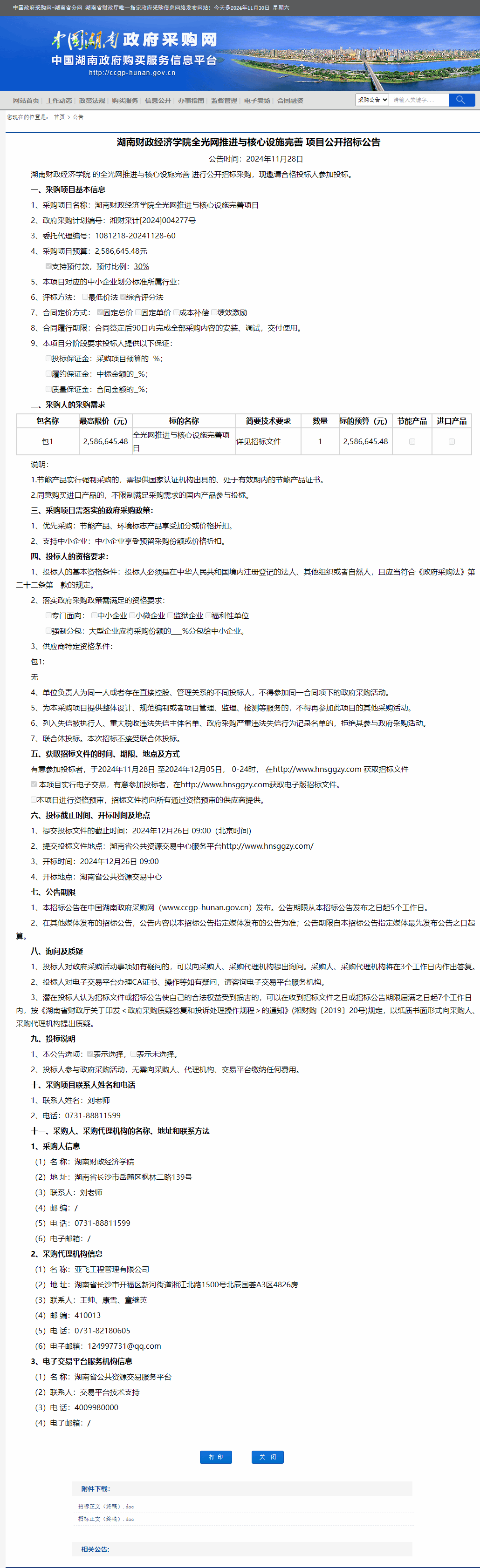 湖南省政府采购网:304永利集团登录入口全光网推进与核心设施完善项目公开招标公告