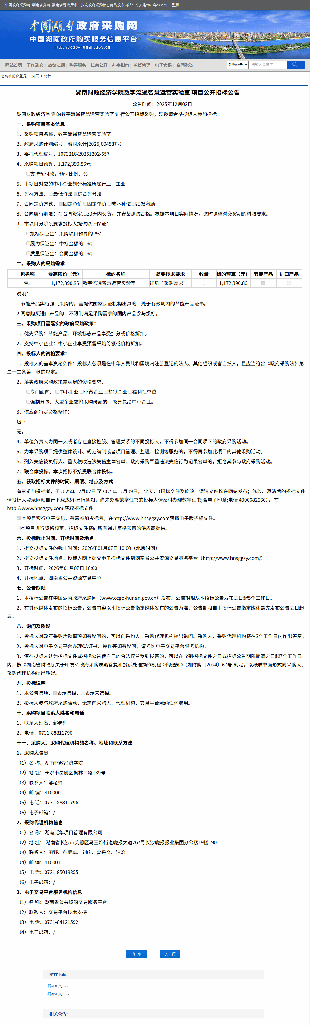 湖南省政府采购网:304永利集团登录入口数字流通智慧运营实验室项目公开招标公告