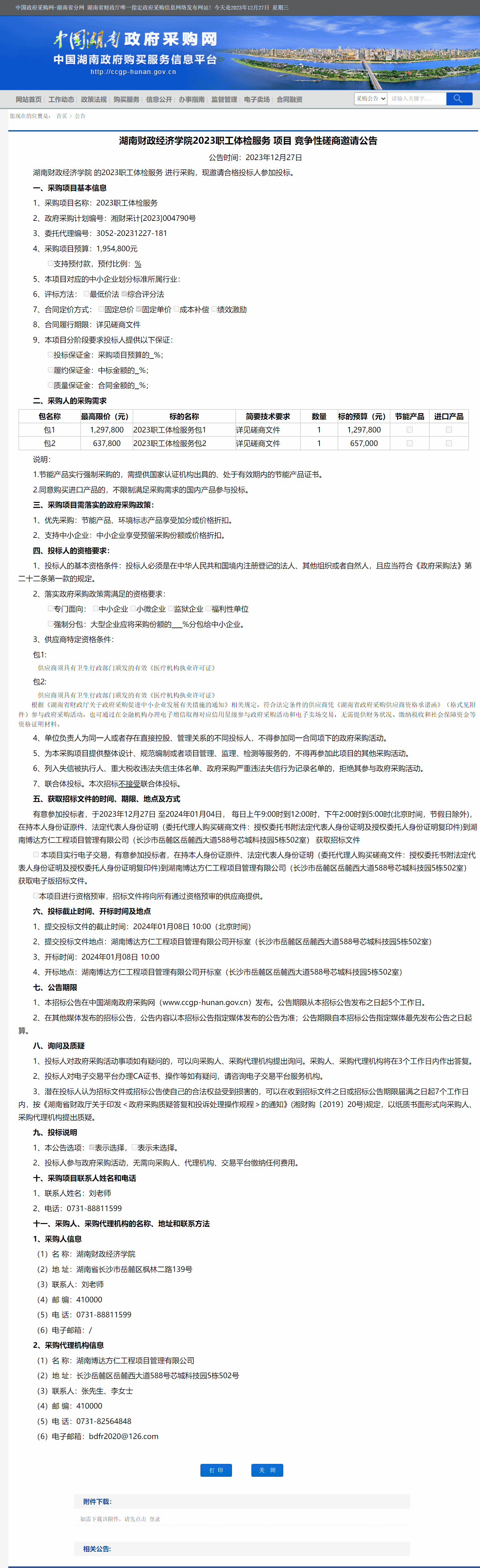 湖南省政府采购网:304永利集团登录入口2023职工体检服务项目竞争性磋商邀请公告
