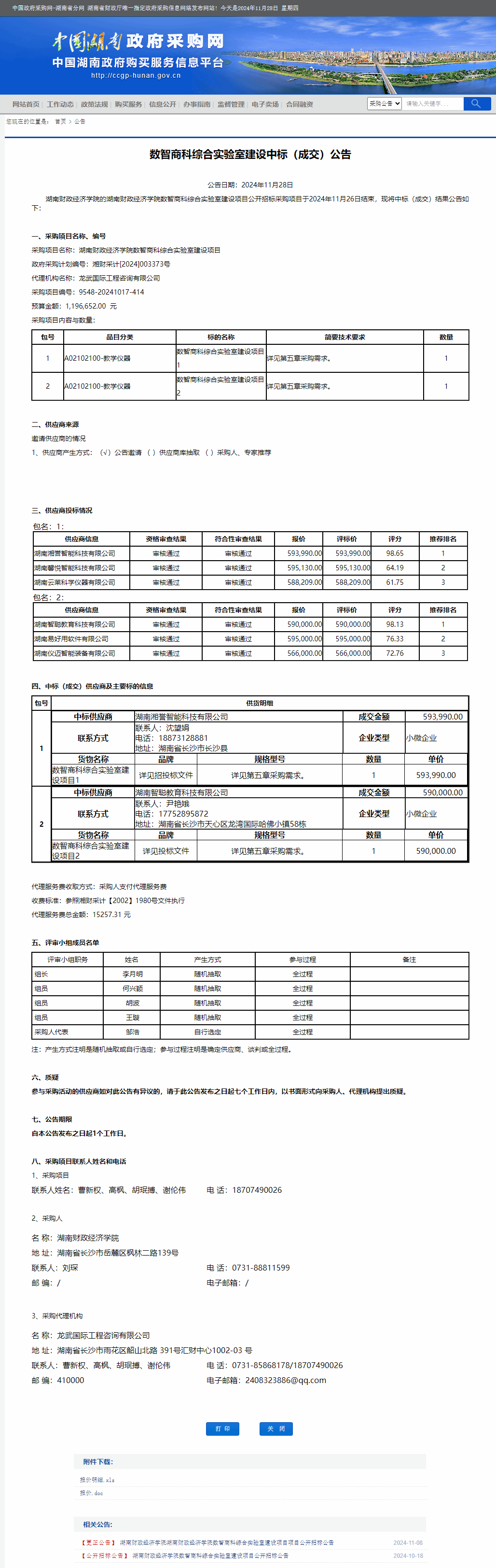 304永利集团登录入口数智商科综合实验室建设中标(成交)公告
