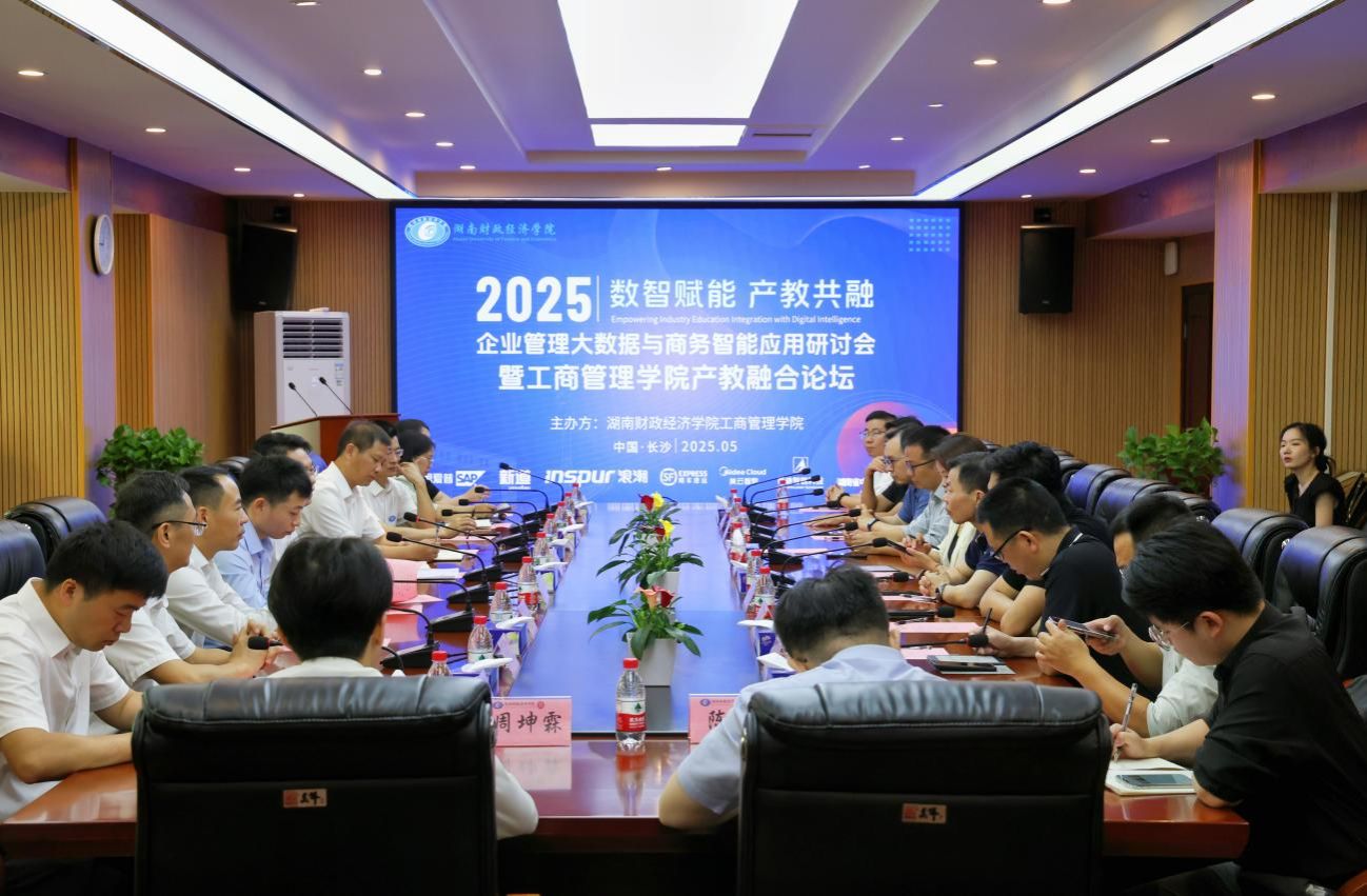 (本网讯)5月17日,企业管理大数据与商务智能应用研讨会暨工商管理学院产教融合论坛在304永利集团登录入口隆重举办。湖南省中小企业公共服务平台,思爱普SAP(中国)有限公司,新道科技股份有限公司,湖南顺丰速运有限公司,浪潮铸远(厦门)科技有限公司,美云智数科技有限公司,广东泰迪智能科技股份有限公司等多家行业领军企业代表齐聚一堂,共同探讨数字经济时代下产教融合、校企合作新路径新举措。