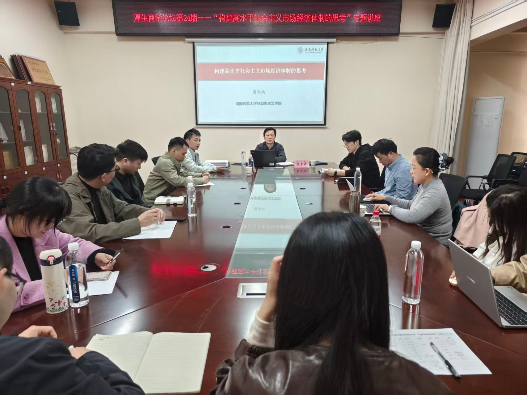 10月29日,工商管理学院在办公楼414-1会议室顺利举办厚生商学论坛第24期—“构建高水平社会主义市场经济体制的思考”专题讲座。此次活动聚焦国家重大战略部署以及学术研究前沿,其目的在于为申报2026年国家社科基金项目的教师提供理论指导与选题参考。