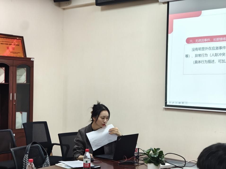 随后,周彩萍根据总结的工作经验,就《精神卫生法》以及心理健康工作中的八大困惑展开了一一讲解,详细说明了科学应对问题的办法,并就学生心理健康档案的入库标准、存档内容以及动态管理三环节展开叙述。