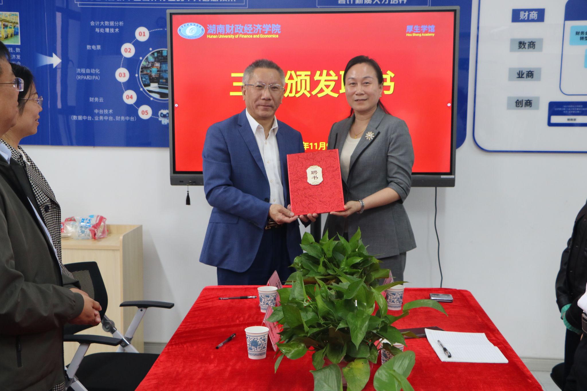 (本网讯)2024年11月9日下午,厚生学馆在至诚楼学馆内举行名誉馆长聘任仪式。北京工商大学原副校长、教育部工商管理学科指导委员会副主任委员、财政部“会计名家”谢志华教授受聘,担任厚生学馆名誉馆长。校党委副书记苏玲、会计学院院长潘彬、工商管理学院院长杨鹏,雷锋书院直属党支部书记余新明,会计学院与工商管理学院领导班子成员、三办主任以及学生代表出席了聘任仪式。仪式由潘彬主持。