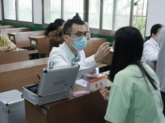 活动现场设置了3间教室作为义诊诊疗室。眼科专家为百余名师生进行视力筛查及干眼症防治指导;口腔科专家为学生做口腔基础检查,普及科学护齿知识;针对教师群体普遍存在的颈椎问题,理疗专家现场开展推拿、拔罐等治疗;内科专家则针对基础体格检查、消化系统、呼吸系统等问题进行解答;心理健康咨询师帮助缓解学生焦虑情绪;妇科专家开设女性健康咨询专场为学生答疑,活动现场火热。
