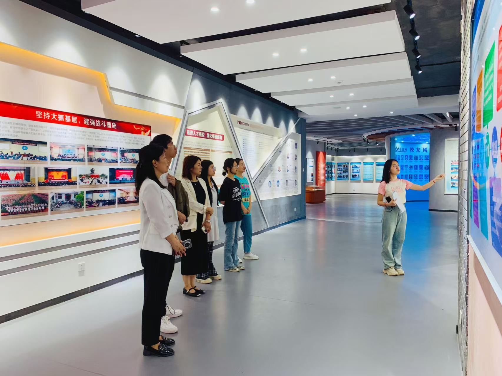 在学生讲解员的精彩解说下,教职工们认真聆听,详细了解展品背后的故事。教职工们重点学习了校史中师德典范人物的先进事迹,这些鲜活案例让老师们深刻体会到,师德师风不仅是抽象的准则,更是融入校史脉络中的行动传承。当看到学校在国际合作方面的成果时,大家感触颇深,这些成果不仅是学校历史的重要组成部分,更为当下的国际交流工作提供了宝贵经验与前进动力。
