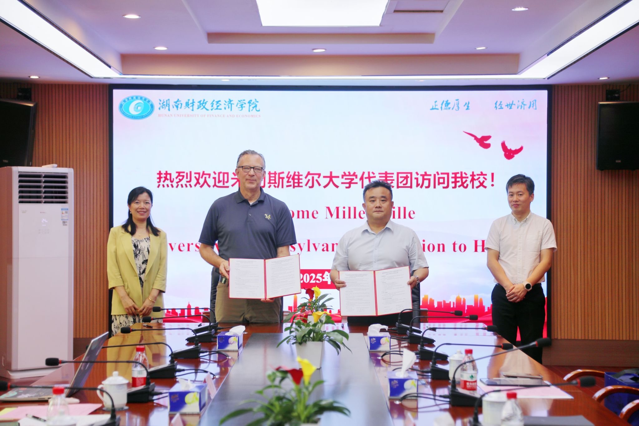 会议上潘爱民代表学校与美国米勒斯维尔大学副校长丹尼尔·库尔马拉签署了两校合作备忘录,国合处、厚生国际教育学院相关负责人参加座谈。