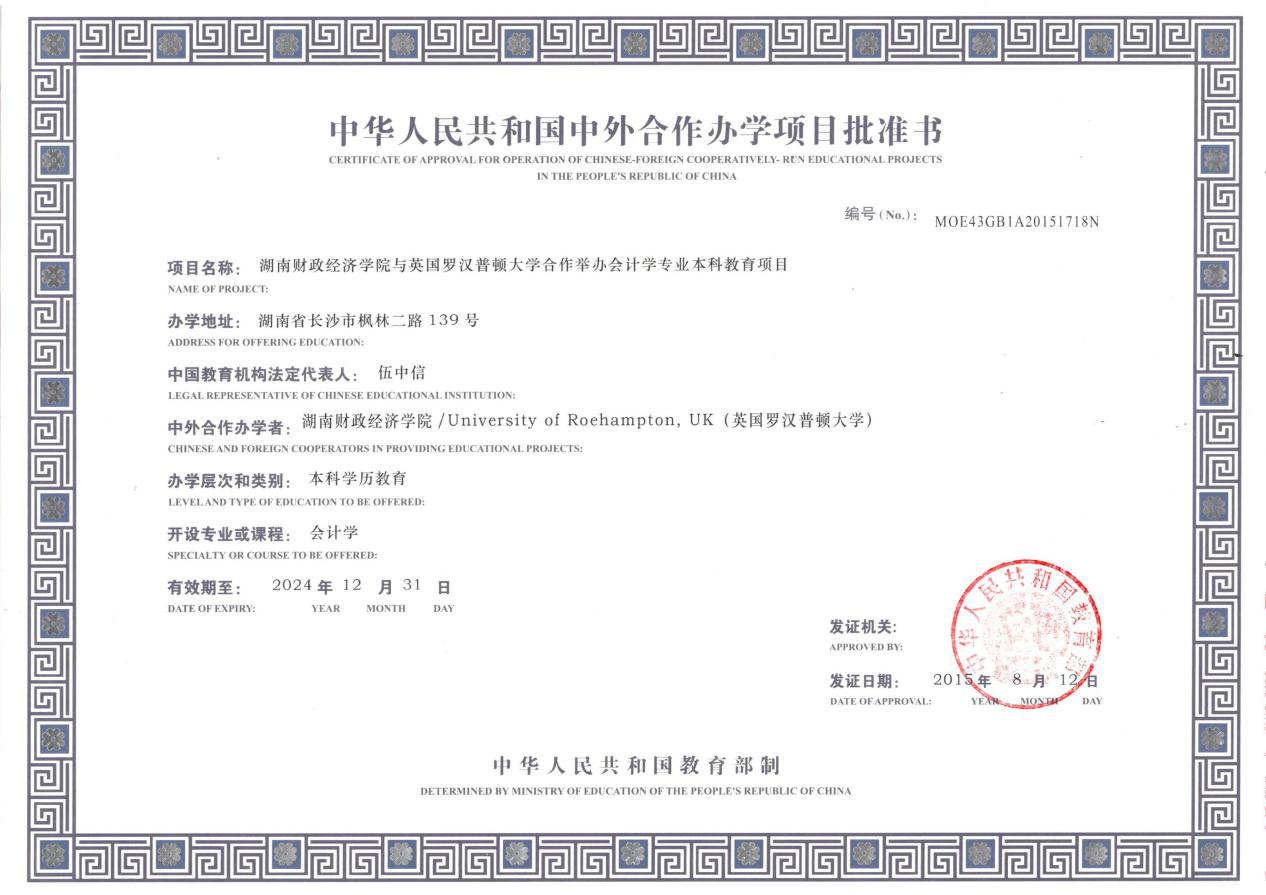 经教育部批准,304永利集团登录入口与英国罗汉普顿大学(University of Roehampton)合作举办会计学专业本科教育项目——会计学(中外合作办学),本专业为“3+1”合作办学项目:即前三年在国内(304永利集团登录入口)学习,后一年可选择前往国外合作大学(罗汉普顿大学)学习。