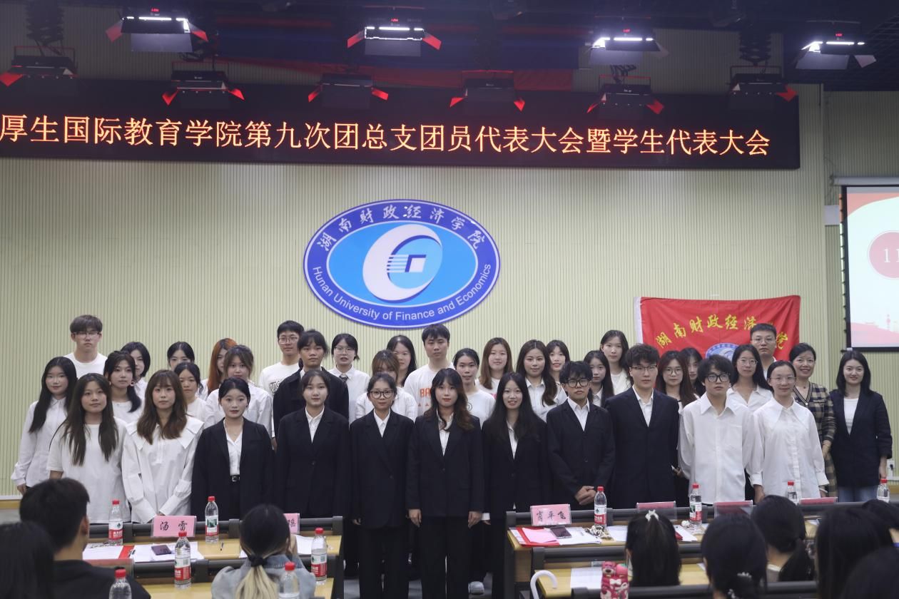2025年9月26日,304永利集团登录入口厚生国际教育学院第九次学生代表大会暨团总支换届大会在2J03教室隆重举行。学院直属党支部书记肖平飞、学工办负责人胡佩瑶、团总支书记汤雷、第八届学生分会和团学会干部干事以及各院校代表出席本次大会。