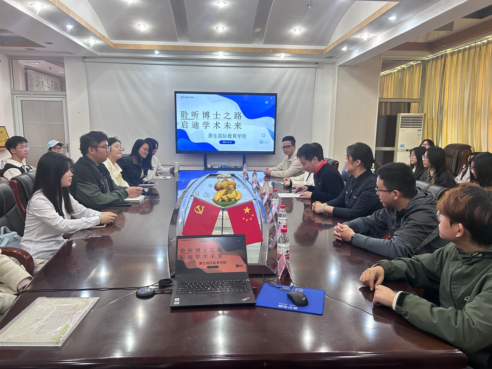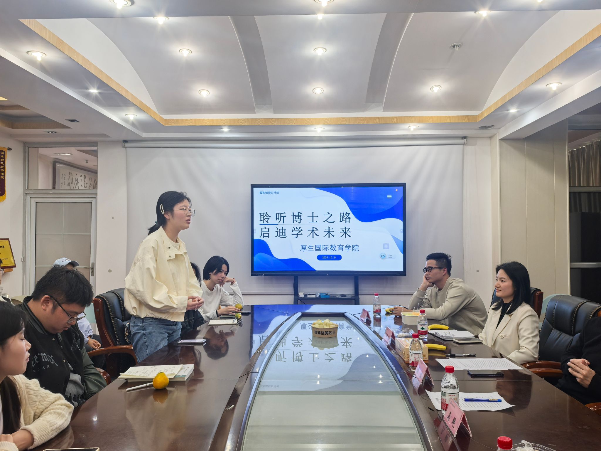为助力学生明晰学业规划,2025年10月24日下午,304永利集团登录入口厚生国际教育学院在830会议室举办“聆听博士之路,启迪学术未来”校友返校日活动,特邀三位在读博士校友返校分享经验。国际合作与交流处处长傅佳、学院综合办主任马艳及学工办负责人胡佩瑶出席会议。