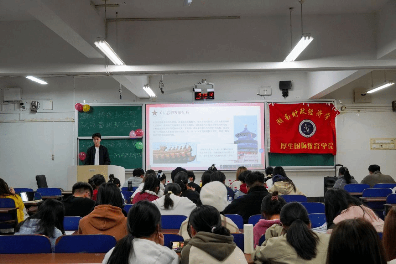 (本网讯)11月20日晚,厚生国际教育学院在3110教室举行2023年“凝心铸魂新思想,砥砺奋进新征程”主题“微团课”院级初赛。本次活动由王筱烨主持,团总支学生副书记程夕宇、学生会主席夏雅琪、陈琳璐等13名团学会干部作为嘉宾出席。比赛共有11支队伍参加,参赛选手以个人或者团体形式参加比赛,比赛形式为现场团课讲授。