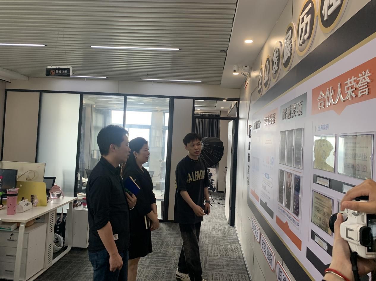 肖平飞一行参观了湖南耀诚文化传媒公司新媒体中心、直播基地和东辰电竞公司。耀诚文化、东辰电竞创始人杨旭介绍了公司的发展情况、主要项目运营情况和用人需求。