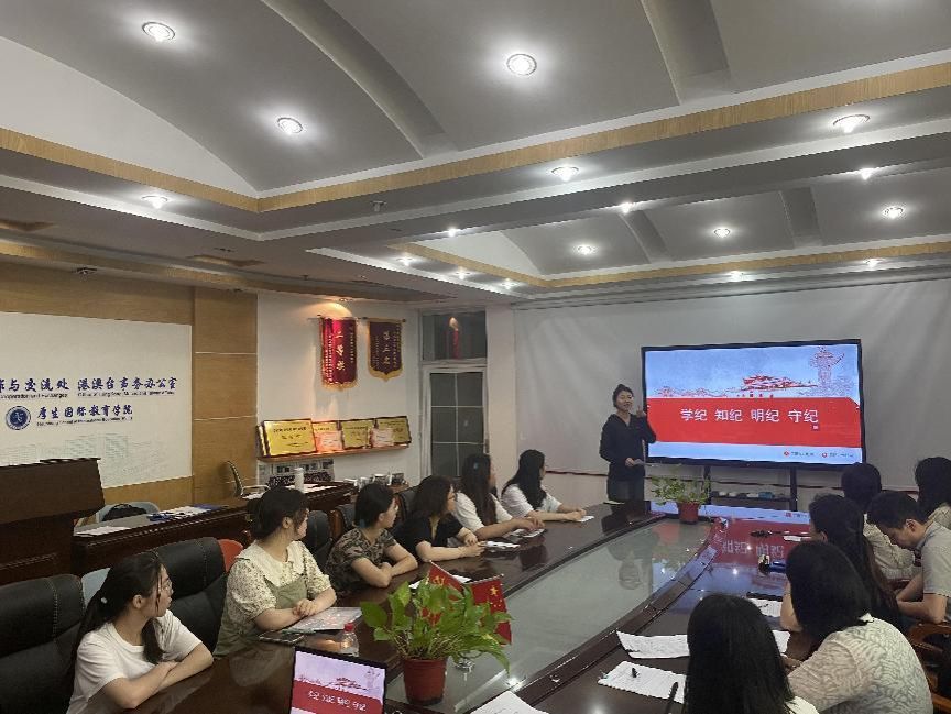 (本网讯)2024年6月13日下午,厚生国际教育学院直属党支部在829会议室开展了“学纪 知纪 明纪 守纪”主题党日活动。本次活动由厚生国际教育学院直属党支部书记肖平飞主持,厚生国际教育学院全体教师党员、学生党员参加。