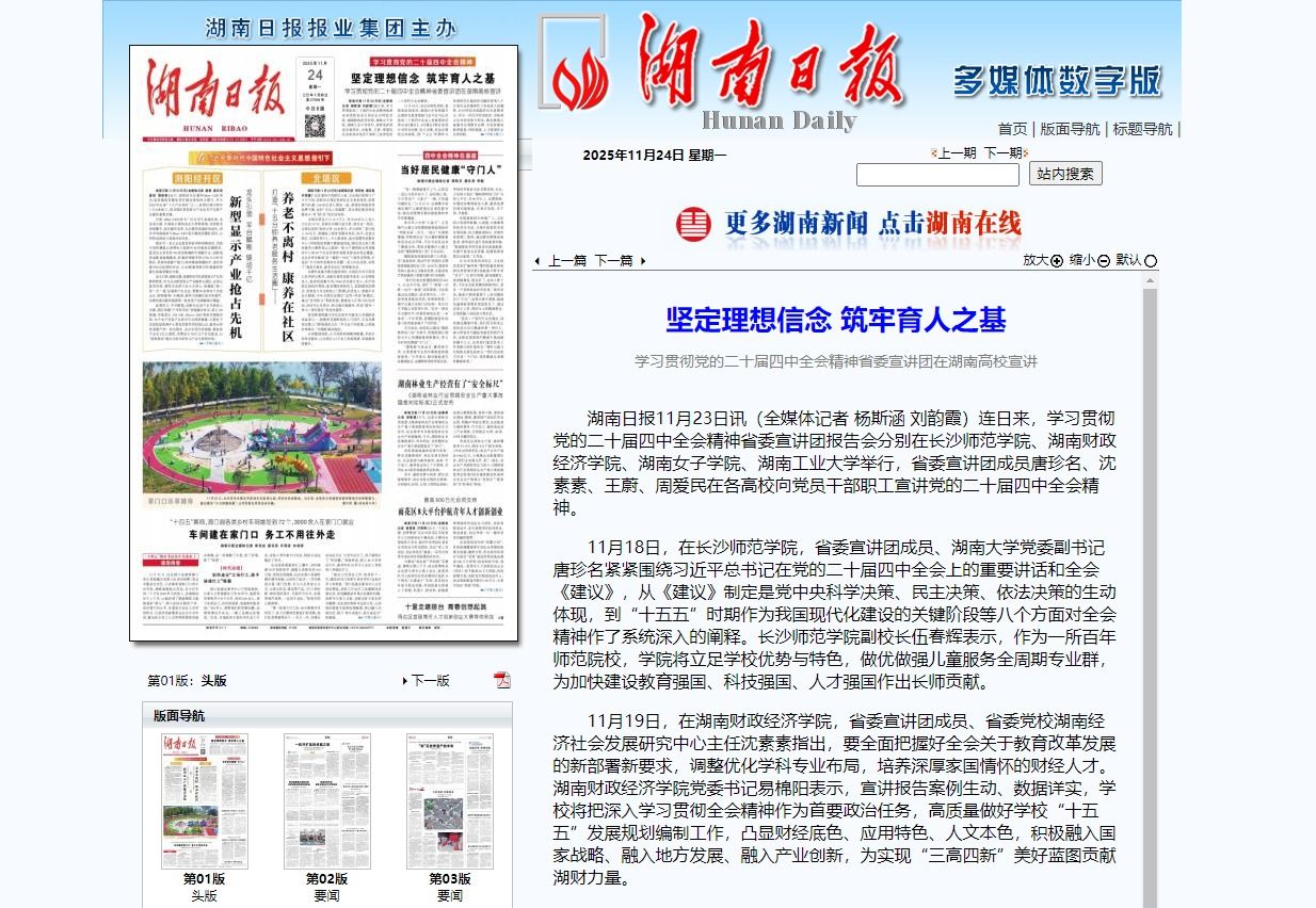 会议现场(本网讯)11月19日,学习贯彻党的二十届四中全会精神省委宣讲团报告会在永利举行。省委宣讲团成员,省委党校(湖南行政学院)湖南经济社会发展研究中心主任沈素素作宣讲报告。校党委书记易棉阳主持报告会,校领导班子成员、中层干部、科级干部参会。沈素素宣讲党的二十届四中全会精神报告会上,沈素素从全会基本情况和《建议》起草过程、准确把握“十五五”时期在基本实现社会主义现代化进程中的重要地位、深刻领会“十五五”...