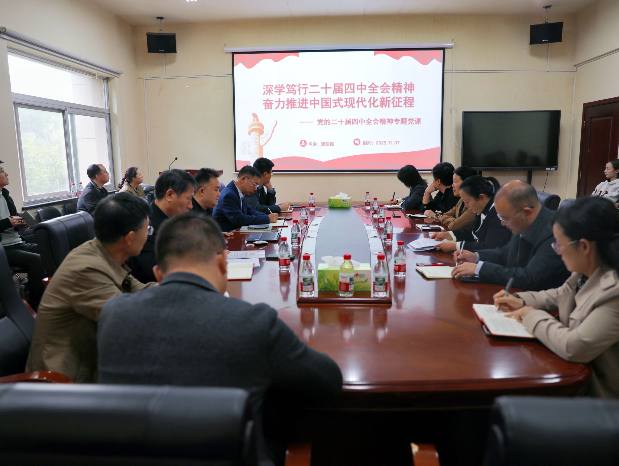 (本网讯)11月7日上午,副校长潘爱民在办公楼215会议室为教务处、国际合作与交流处、图书馆、学报编辑部、教学质量监控与评估中心、会计学院、工程管理学院师生代表作党的二十届四中全会精神宣讲报告。报告会由会计学院党委书记戴恩湘主持。会议现场潘爱民紧紧围绕习近平总书记在党的二十届四中全会上的重要讲话和《中共中央关于制定国民经济和社会发展第十五个五年规划的建议》,从深刻领会党的二十届四中全会召开的重大时代意义、...