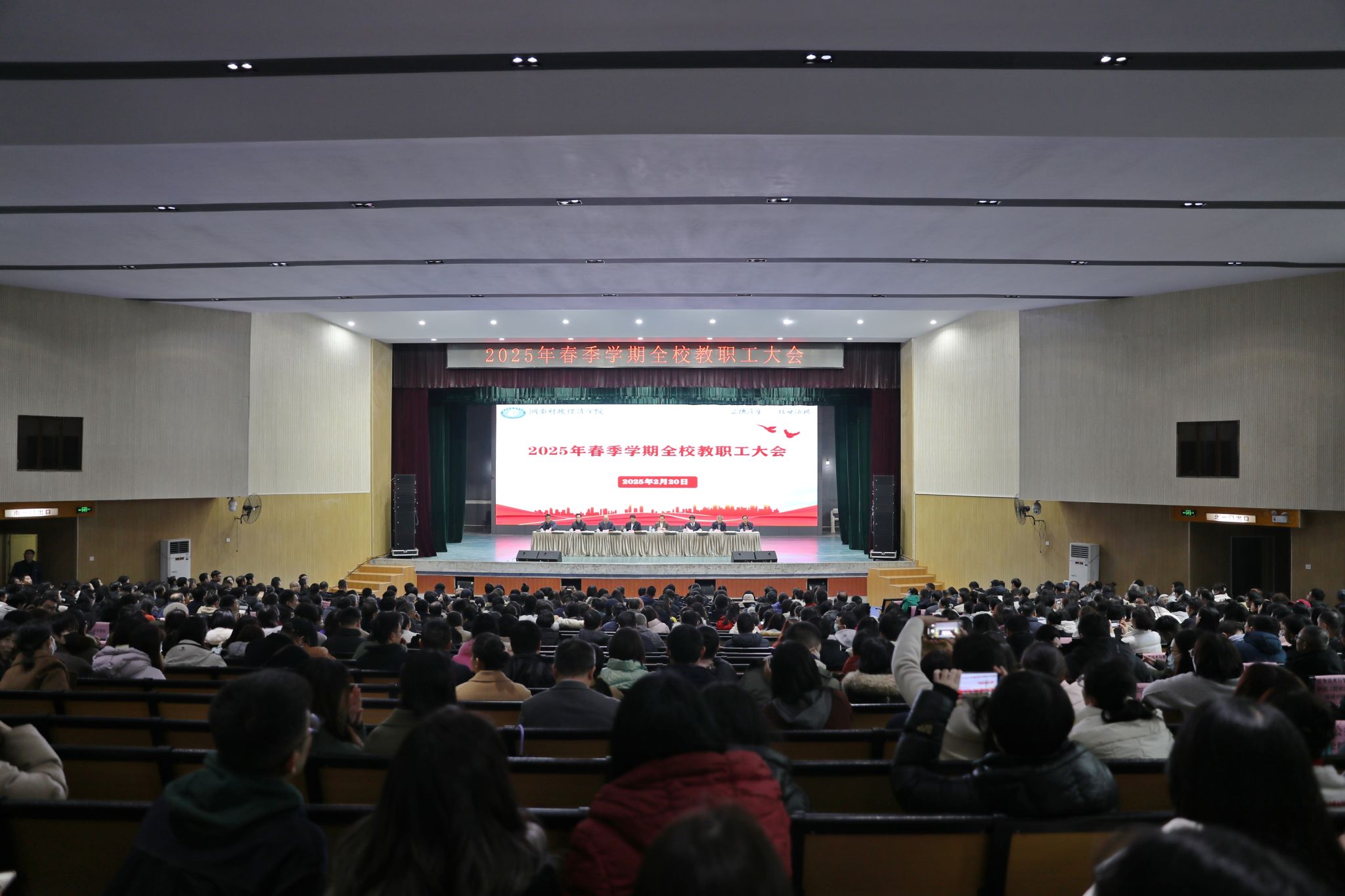 (本网讯)2月20日下午,学校召开2025年春季学期全体教职工大会,部署全年重点任务,进一步凝心聚力推进各项工作高质量发展。学校领导班子成员及全体教职工齐聚一堂,共同开启新学期篇章。副校长赵鹤平主持会议。大会现场郭国强宣读年度考核优秀单位名单副校长郭国强宣读了学校2024年度考核优秀单位名单,全体校领导为获奖单位颁奖。颁奖仪式苏玲作学校年度工作报告校党委副书记苏玲作学校年度工作报告。她全面总结了学校2024年在党建引领、...