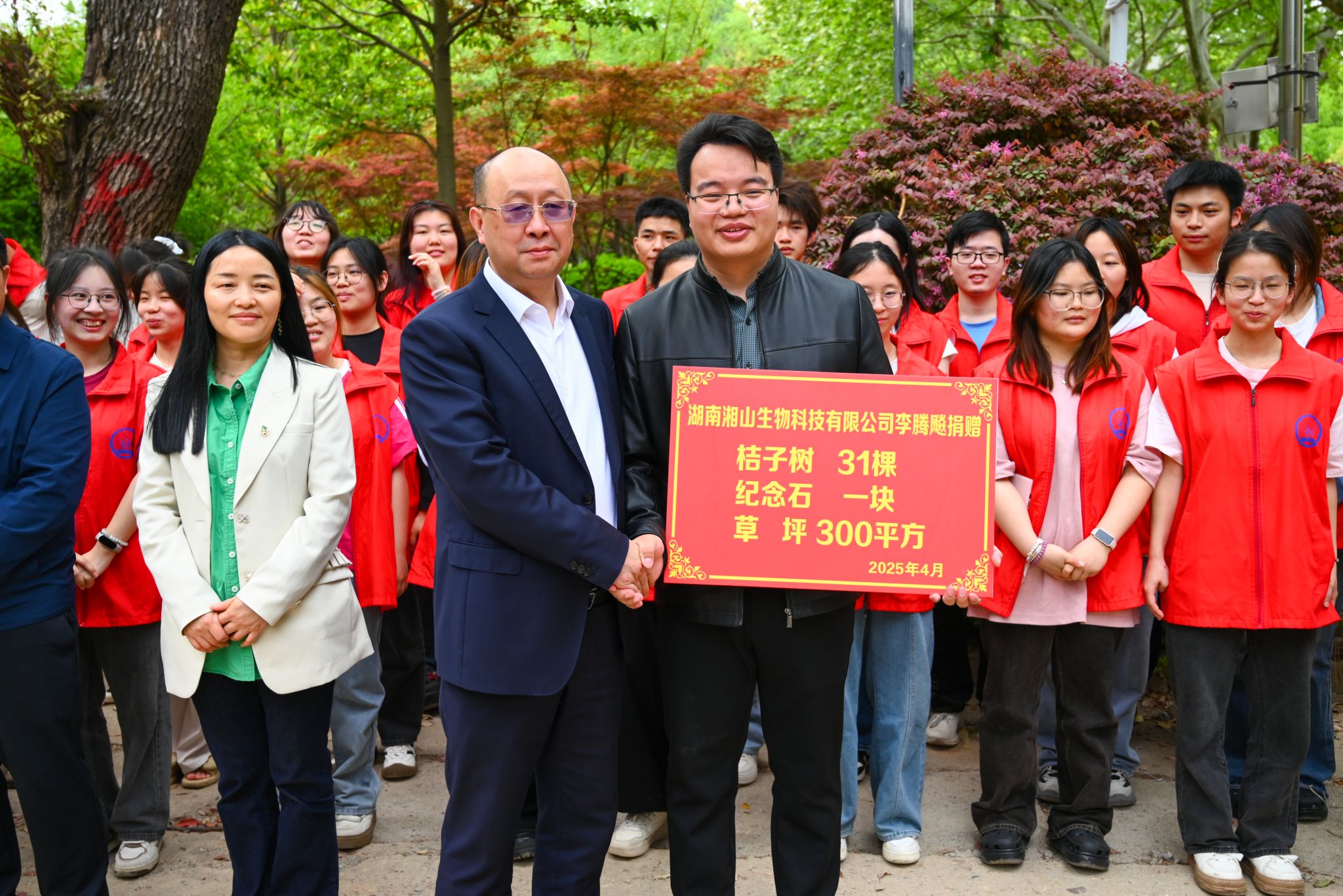 (本网讯)4月9日下午,“橘香盈院,师恩永念”校友捐赠仪式暨数学与统计学院植树活动在主校区举行。2016届校友、湖南省青联委员、娄底市政协常委、湖南湘山生物科技有限公司总经理李腾飚向学校捐赠纪念石和31棵橘树,以报答母校的培育之恩。活动现场 马致炫/摄副校长赵鹤平出席活动并致辞,厚生教育基金会、创新创业与人工智能学院、数学与统计学院、会计学院等部门负责人及学生代表共同见证这一特别时刻。赵鹤平致辞 马致炫/摄赵鹤平言辞恳切地向一直心系母校、...