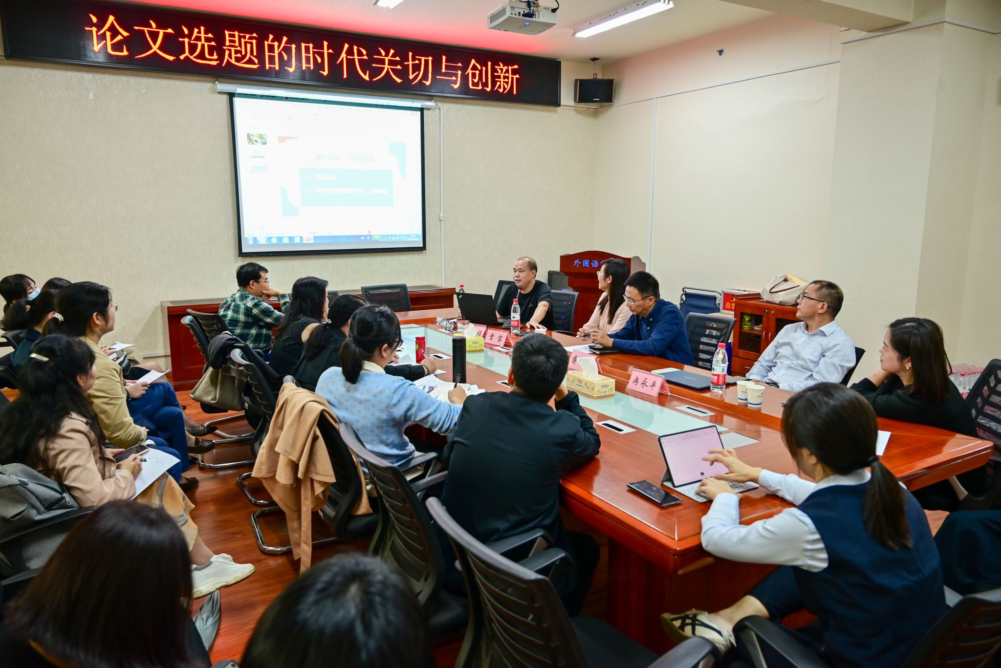 (本网讯)10月27日下午,外国语学院邀请广东外语外贸大学博士生导师、《现代外语》主编冉永平教授、研究员刘件福、副研究员雷容来校为学院专任教师作学术论文写作专题讲座。讲座由院党委书记蒋勇威主持。讲座现场冉永平以“论文选题的创新与时代关切”为主题,从创新性、时代性、存在问题以及建议等方面展开论述。他强调,学术研究要有创新点,创新源于文献研究和问题挖掘,高校教师要选择相关性、代表性的文献进行阅读,带着批判性思维,...