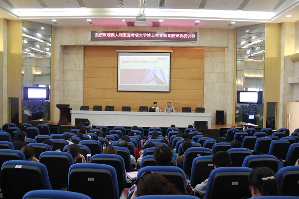 5月18日下午,澳大利亚大学麦考瑞大学博士生导师粟霞应邀在校图书馆学术报告厅作了一场题为“关于如何在国外刊物发表学术论文”的学术报告。报告会由会计学院院长刘纳新主持。粟霞博士主要从事管理控制系统,环境管理...