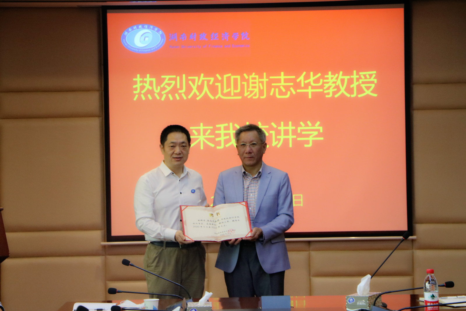 (本网讯)5月19日上午,北京工商大学谢志华教授应邀在湖南财院办公楼715会议室作主题为“如何进行新商科专业建设”的学术讲座。校党委书记肖湘愚、党委委员、组织部部长王颖梅、湖南省财政厅会计处处长曾子兰、湖南...