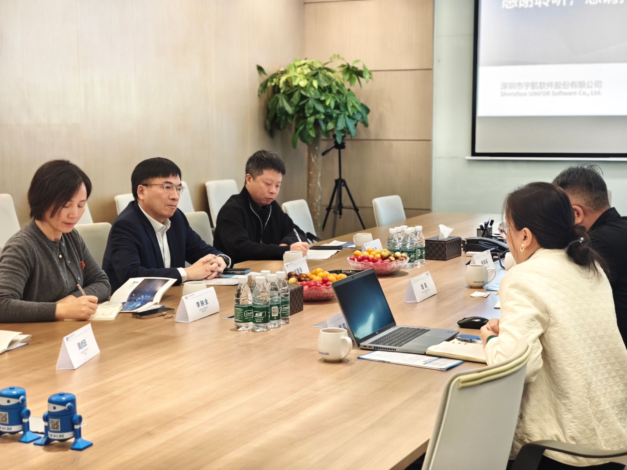 在深圳宇航软件股份有限公司,公司总经理袁良热情接待了郭国强一行。双方围绕企业人才需求、行业发展趋势、学院专业设置与人才培养方向的契合点等内容进行了深入探讨。郭国强提出,要进一步加大校企合作力度,完善学生实习实践制度,细化合作内容,共建实习就业基地,更深层次推进产教融合。