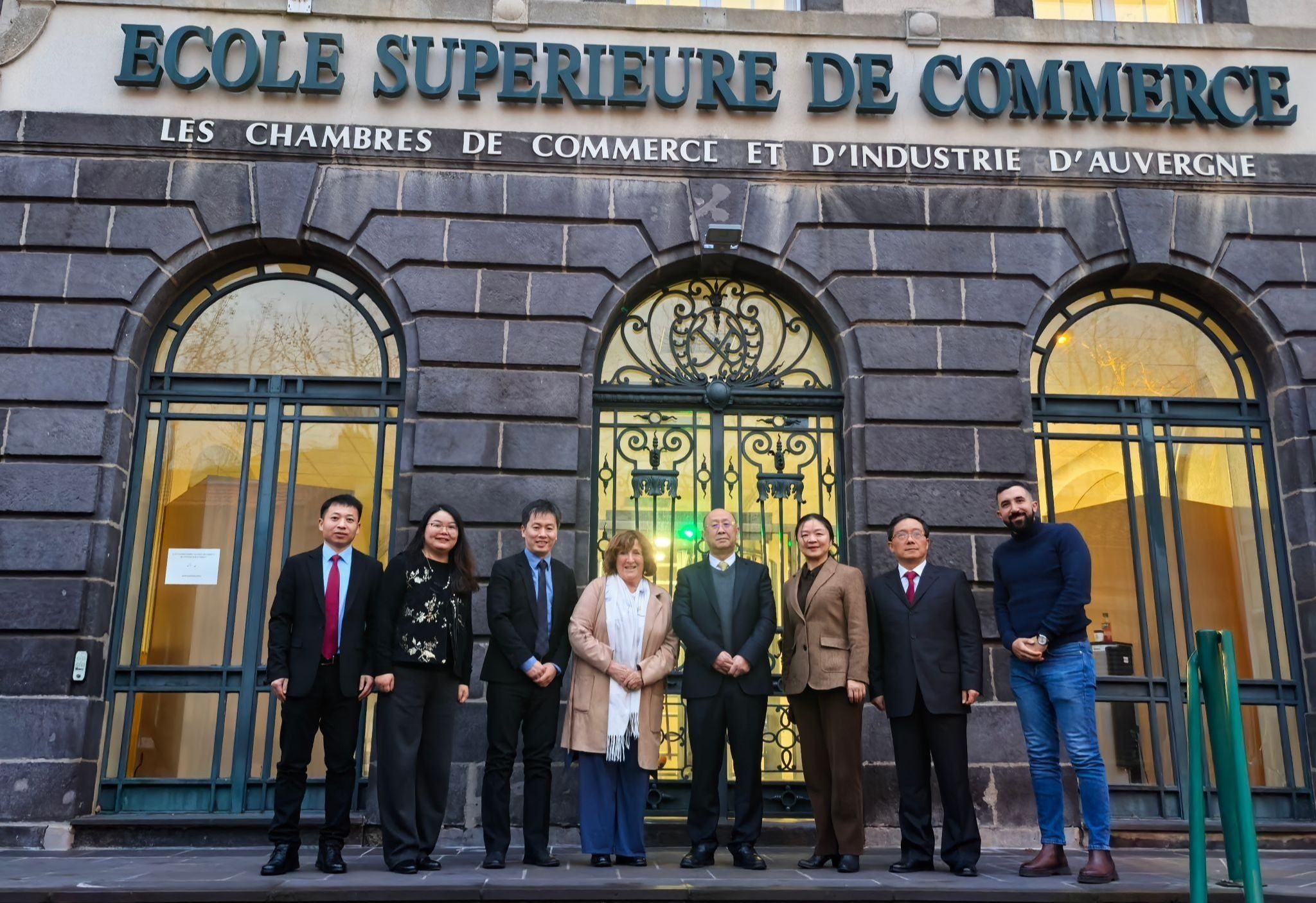 赵鹤平一行首先访问了法国克莱蒙高等商学院(ESC)。克莱蒙高等商学院成立于1919年,隶属于法国多姆山省政府,在FT和QS历年排名中,克莱蒙商学院一直名列世界百强商学院。代表团一行在工作人员的陪同下参观了该校,特别是对数字化的教学设施、学生学习活动区、食堂等进行了深入考察,了解国际学生在学习和生活方面的融入程度,并与国际事务负责人Helga Fouré-Joopen就教师互访、学生交流项目等进行了深入探讨。