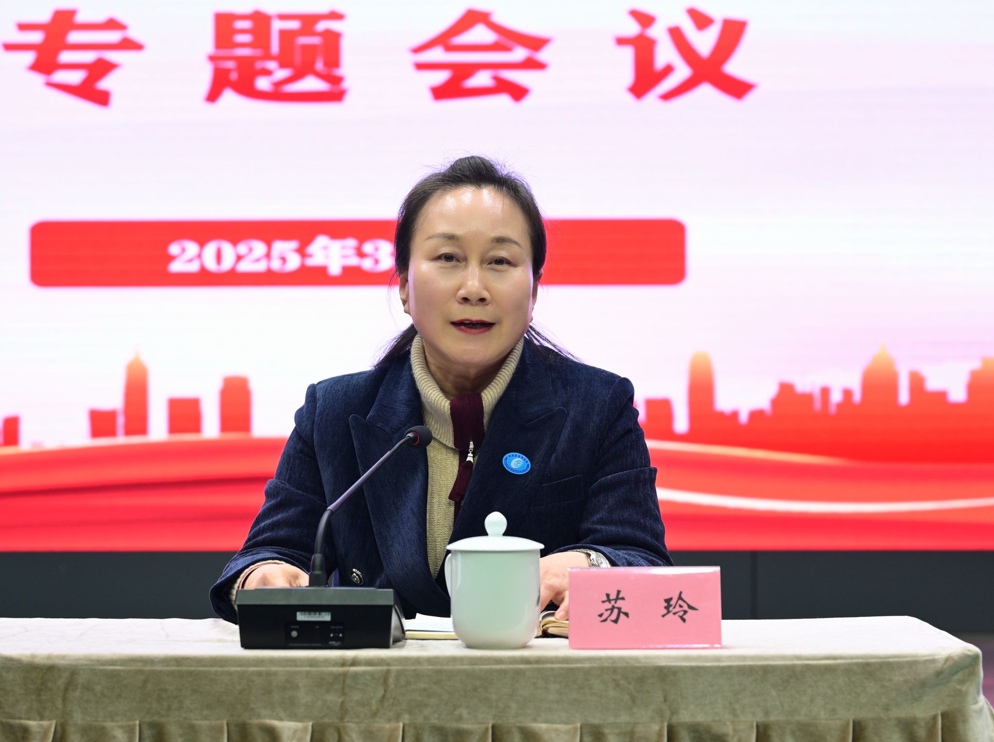 (本网讯)3月5日下午,学校召开深入学习贯彻习近平总书记关于教育的重要论述专题会。校党委书记易棉阳作专题辅导报告,全体校领导,各职能部门负责人、二级学院党政负责人,全体教授、博士参加会议。校党委副书记苏玲主持会议。