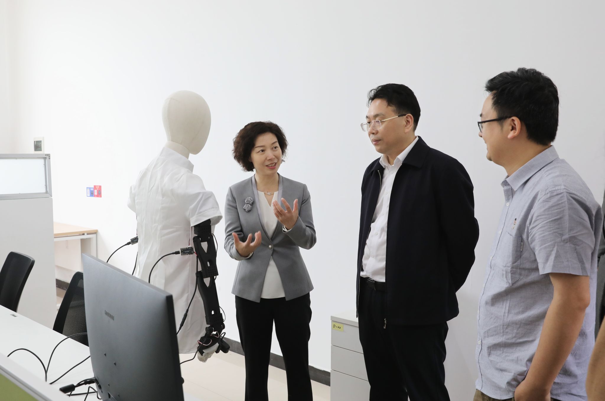 杨兰英(左)调研学校大学生创业孵化中心 何妍/摄