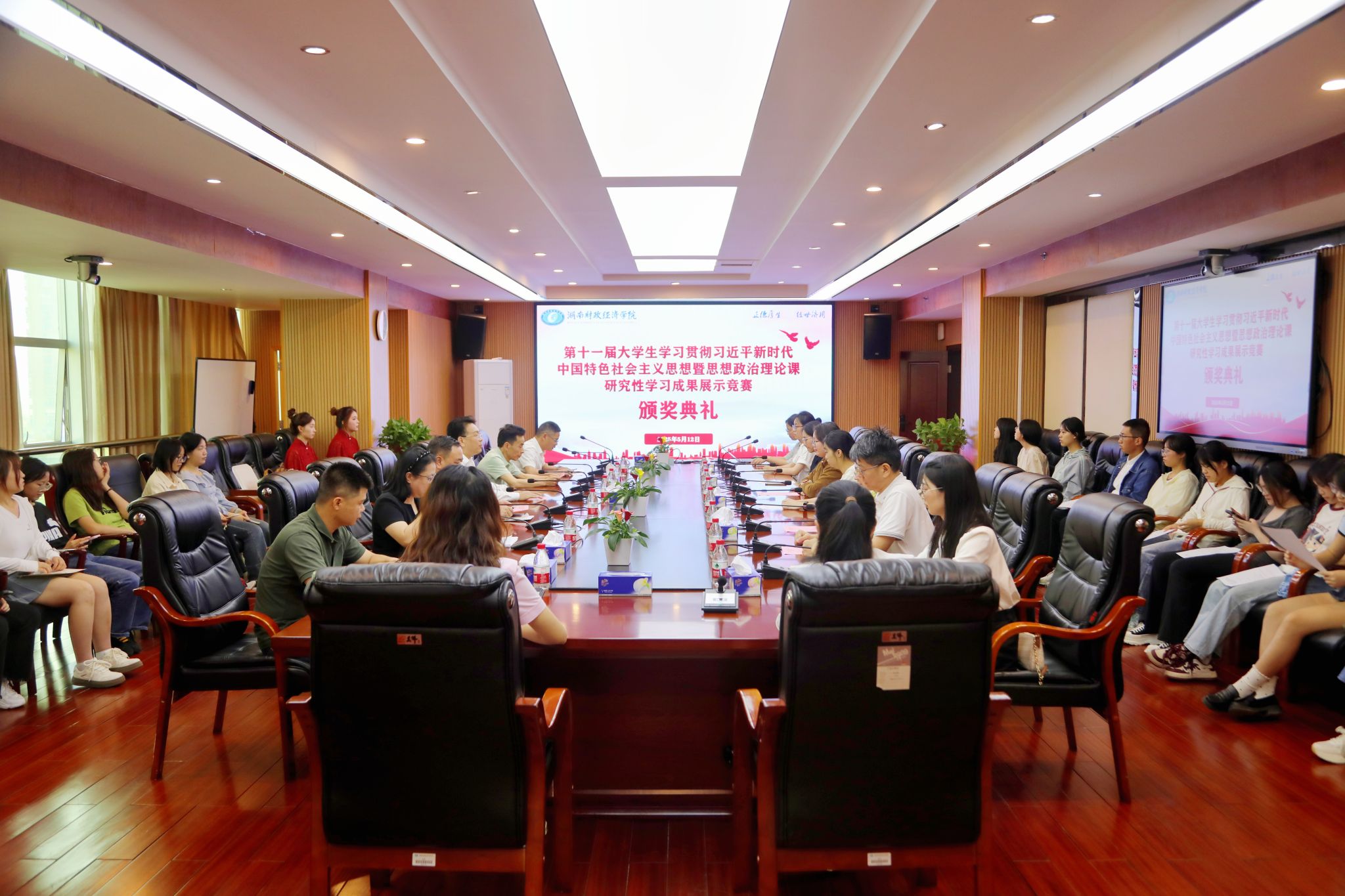 (本网讯)5月12日下午,永利第十一届大学生学习贯彻习近平新时代中国特色社会主义思想暨思想政治理论课研究性学习成果展示竞赛颁奖典礼在办公楼715会议室举行。校党委书记易棉阳,纪委书记李雪山,党委委员、宣传部、统战部部长文炳勋为荣获特等奖、一等奖的学生代表颁奖。马克思主义学院院长黄建跃主持颁奖典礼,直属党支部书记刘东艳宣读获奖名单,学院教师代表与获奖学生代表共同见证荣誉时刻。
