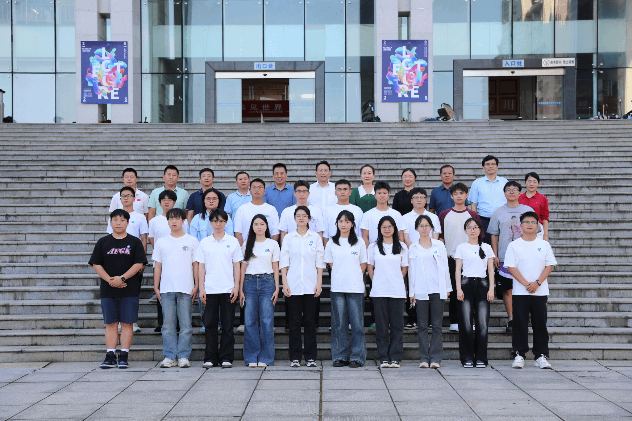 学校领导、老师与2025届毕业生代表合影留念 邓柳/摄
